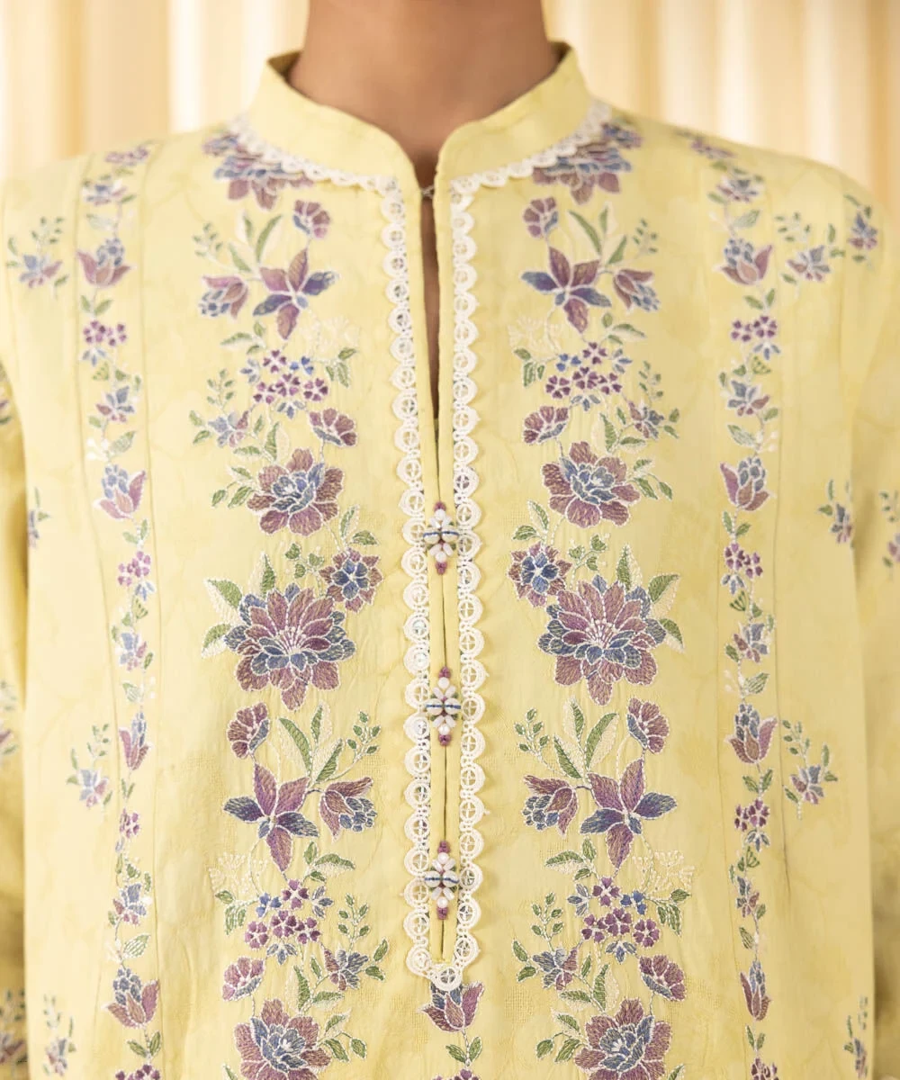 Dyed Embroidered Cotton Jacquard Shirt Front Panels 3pc