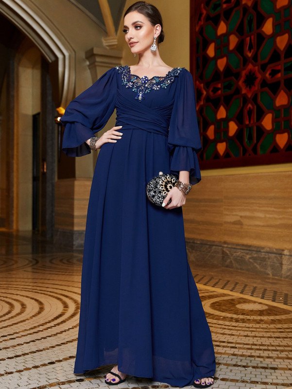 Chiffon Blue Abaya Dubai Luxury Prayer Clothes Women Dresses Kebaya