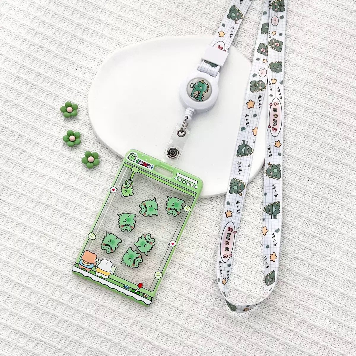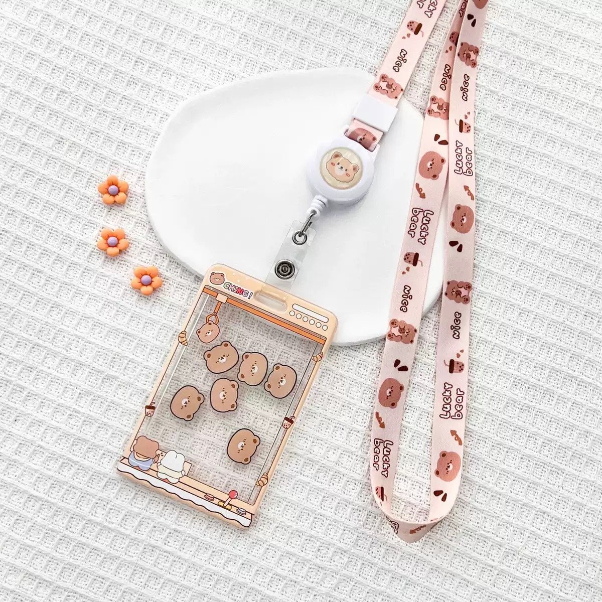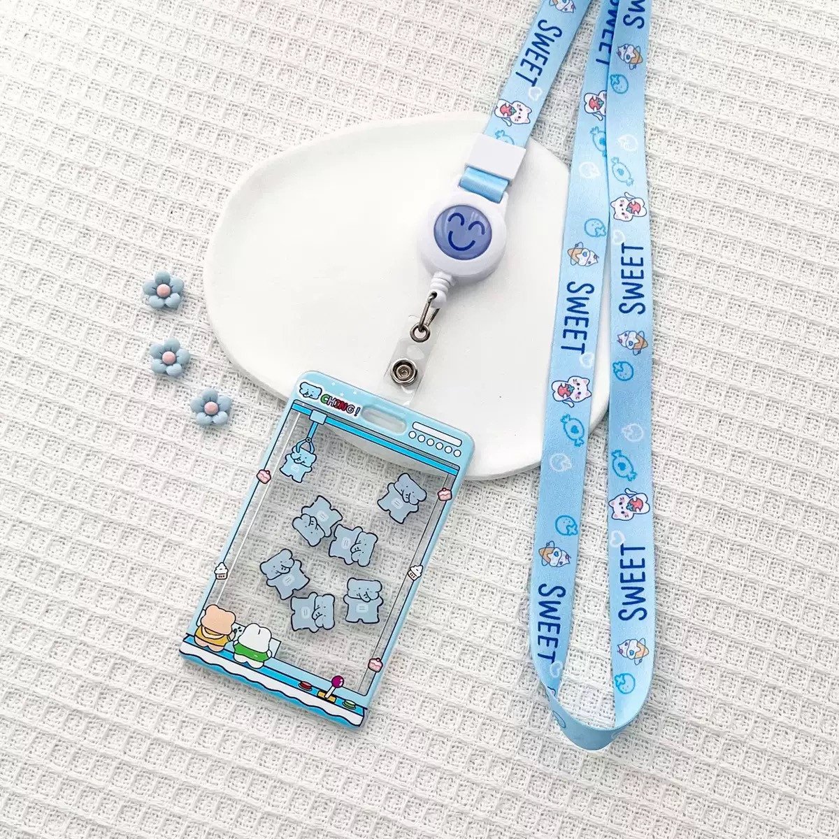 Cute Cartoon Acrylic ID Card Holder With Rope