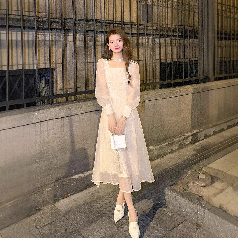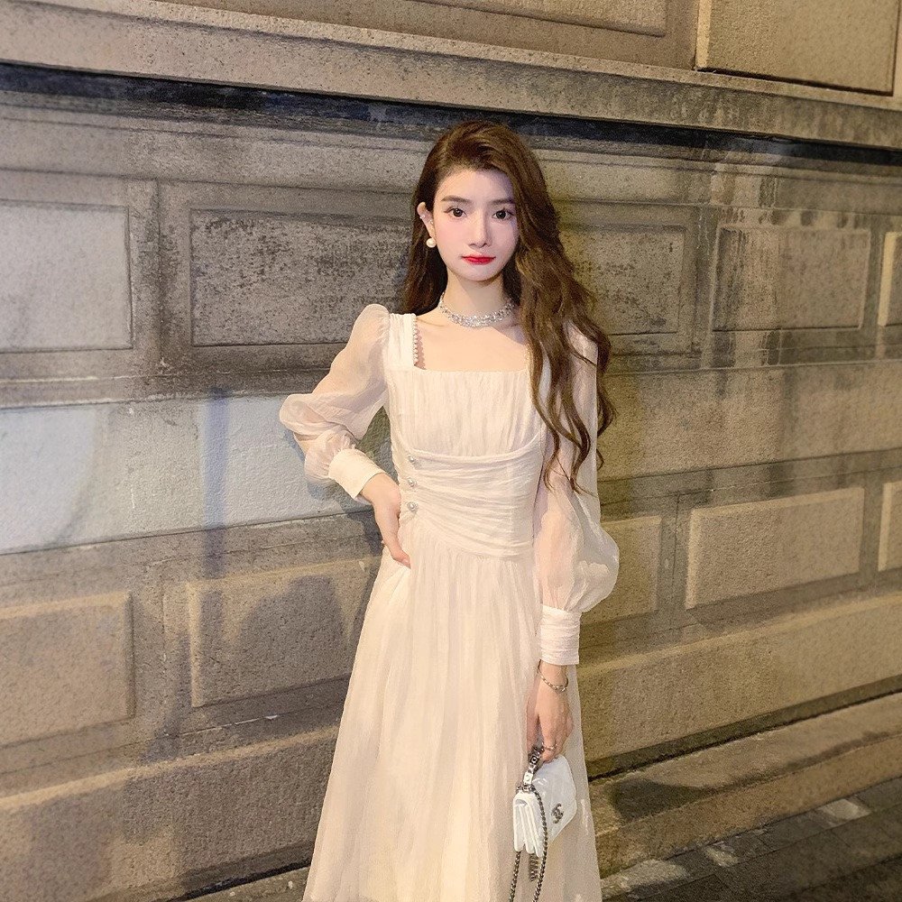 Elegant Chiffon Square Collar Celebrity Dress