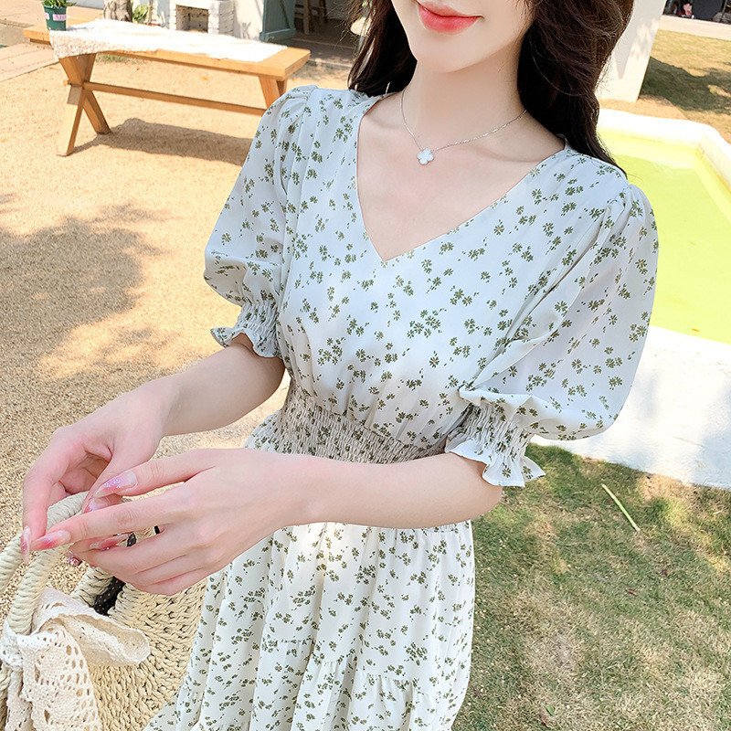 Elegant Floral Lantern Sleeve A-Line Party Dress
