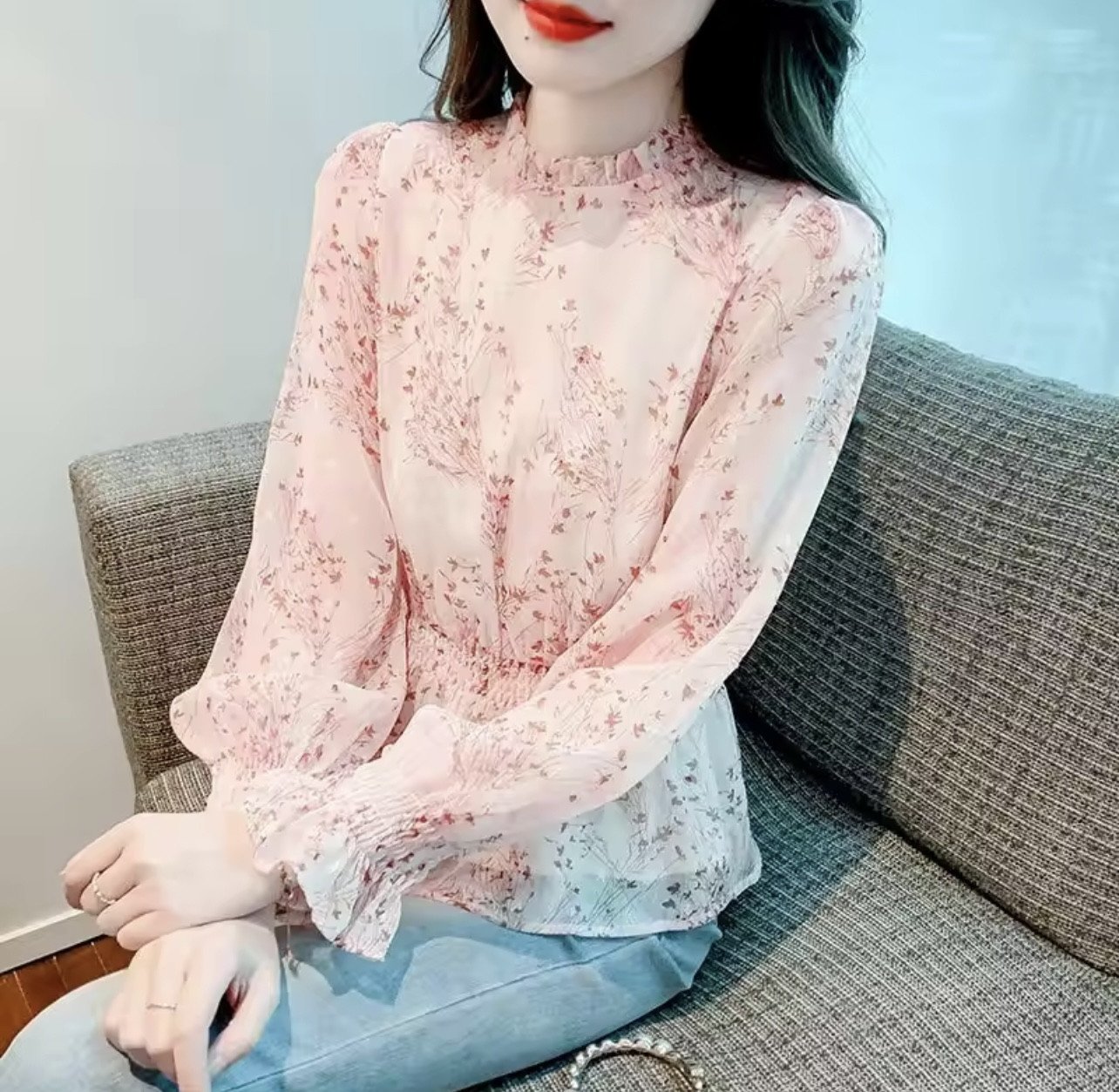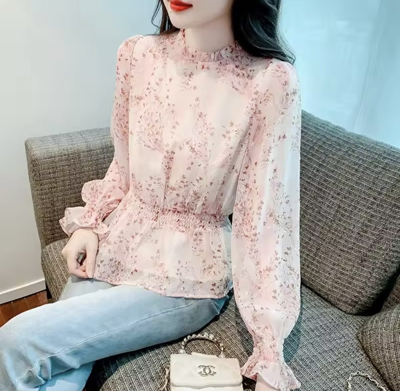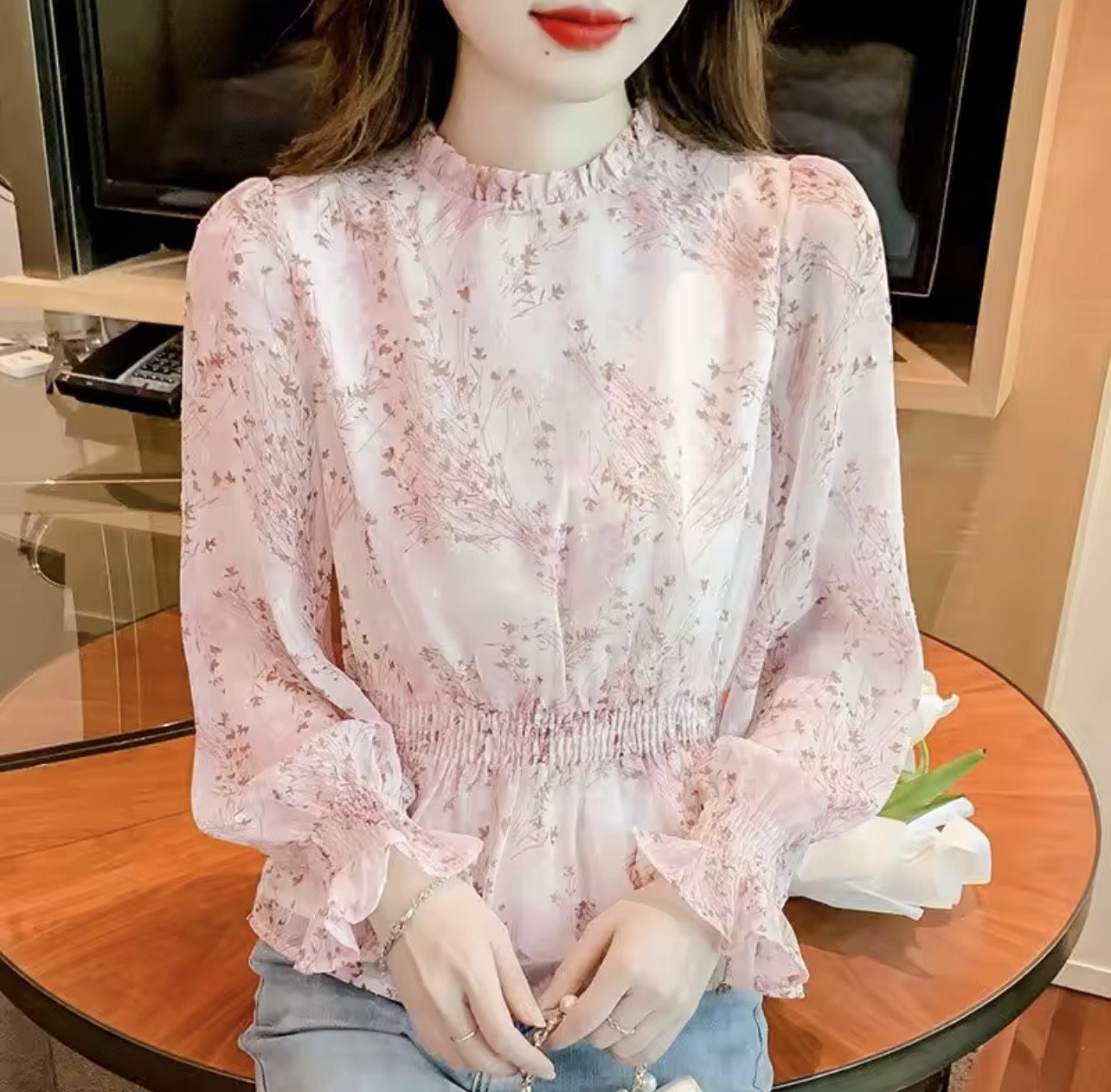 Elegant Floral Patterns Chiffon Ruffled Tops