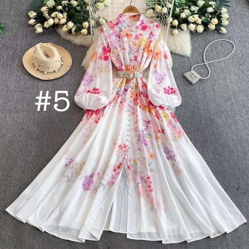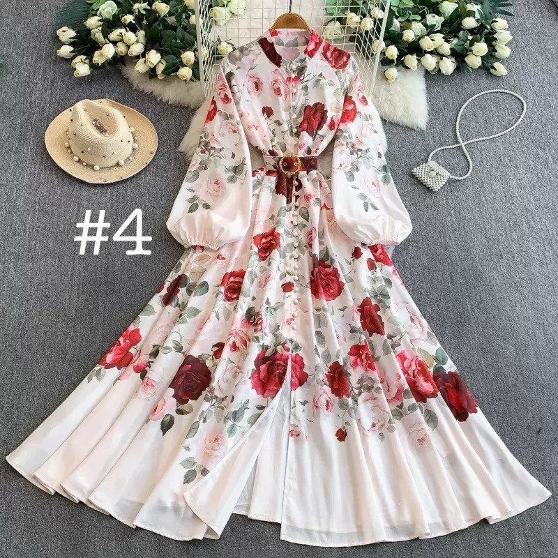 Fashion Niche Retro Court Style Floral Printed Long Dress