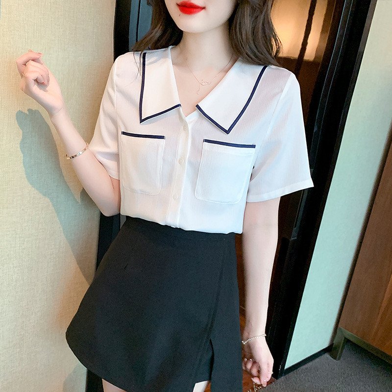 F.M.Y Turn Down Collar Casual Chiffon Shirt