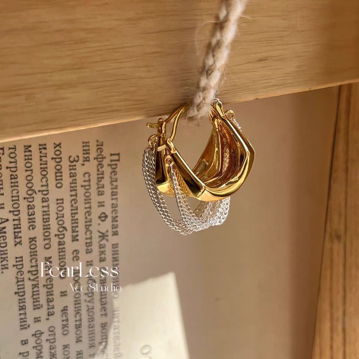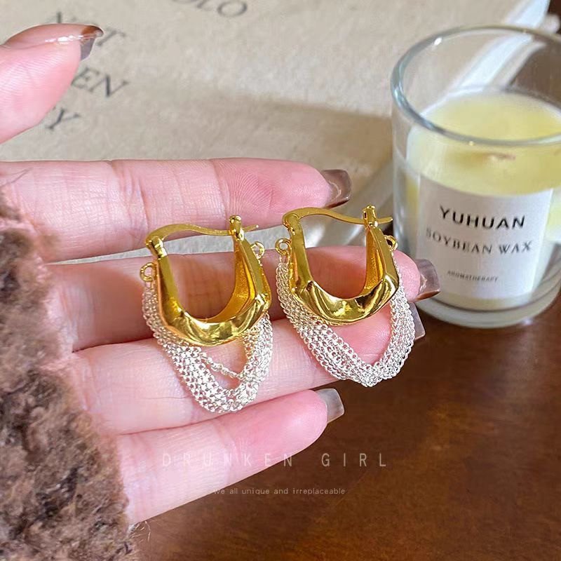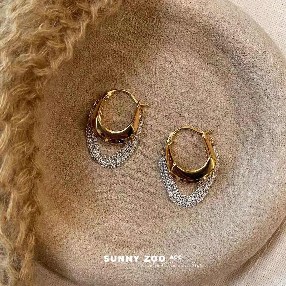 Gold and Silver Contrast Fashion Chain Tassel Earrings