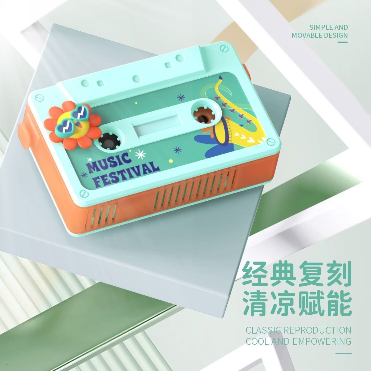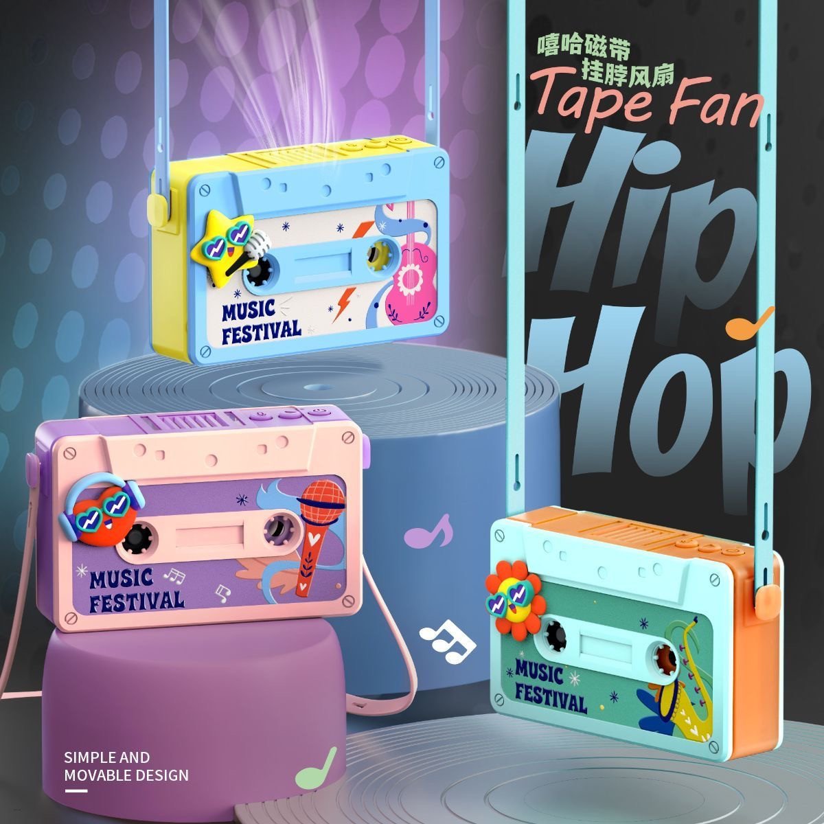 Hip-Hop Bladeless Neck-Hanging Mini Fan With Voice Recorder