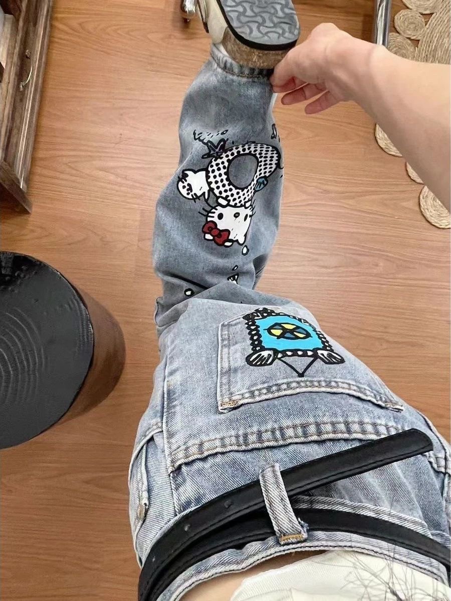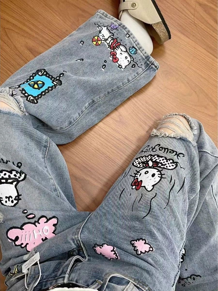 Kawaii Hello Kitty Loose Fit Casual Wide Jeans