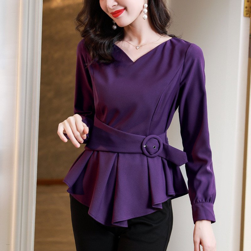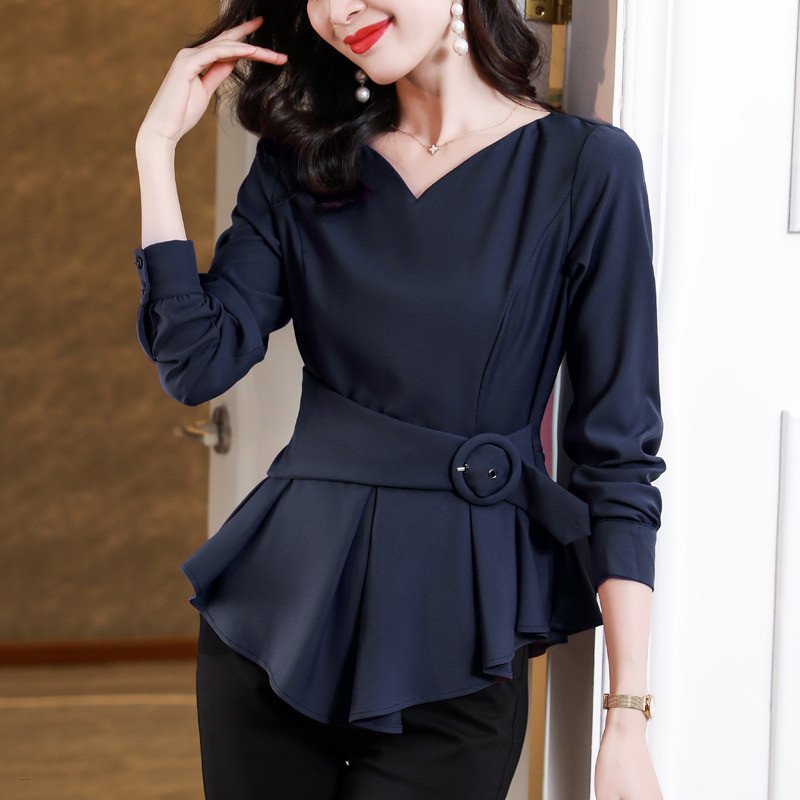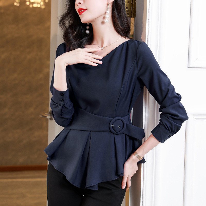 Korean Elegant Solid Color Lacing Asymmentrical Tops
