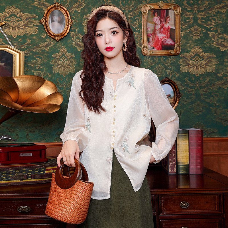 Korean Fashion Embroidery Summer Casual Chiffon Tops