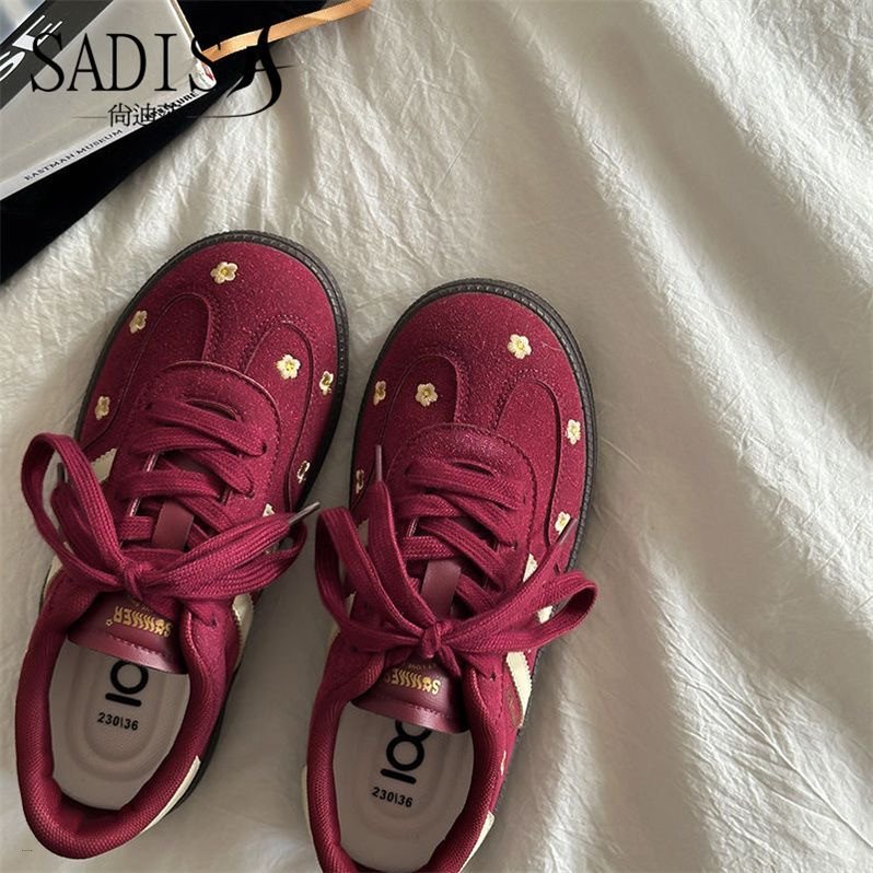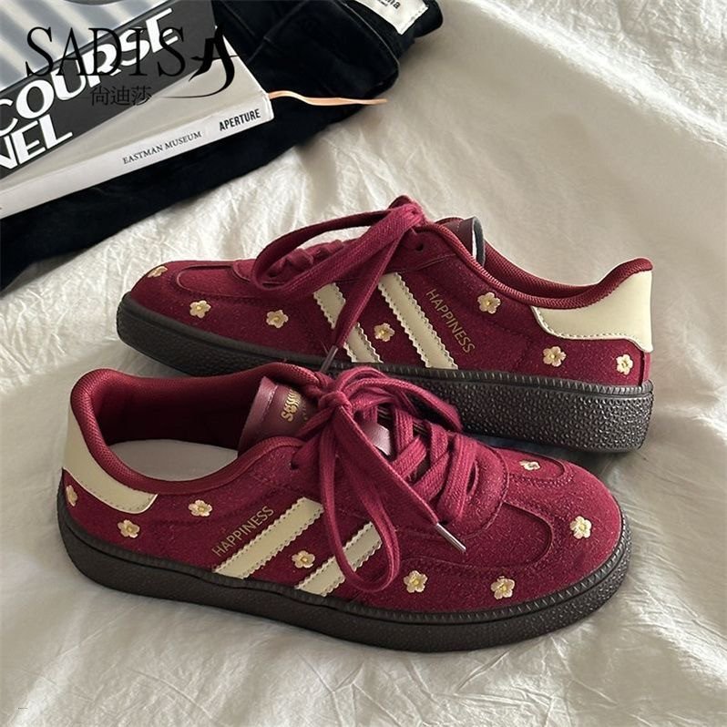 Korean Round Toe Stripe Designer Vulcanized Shoes