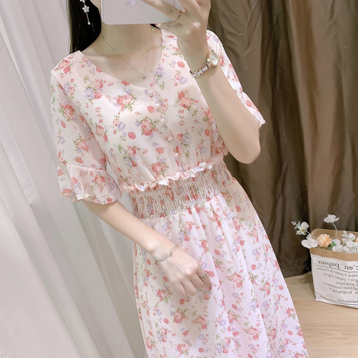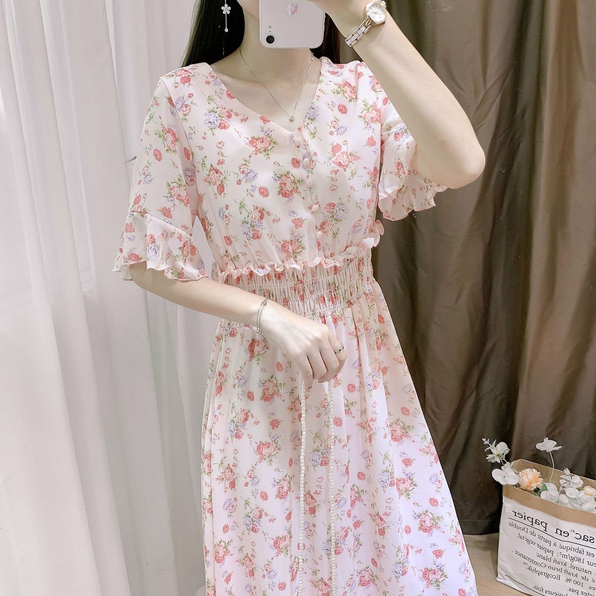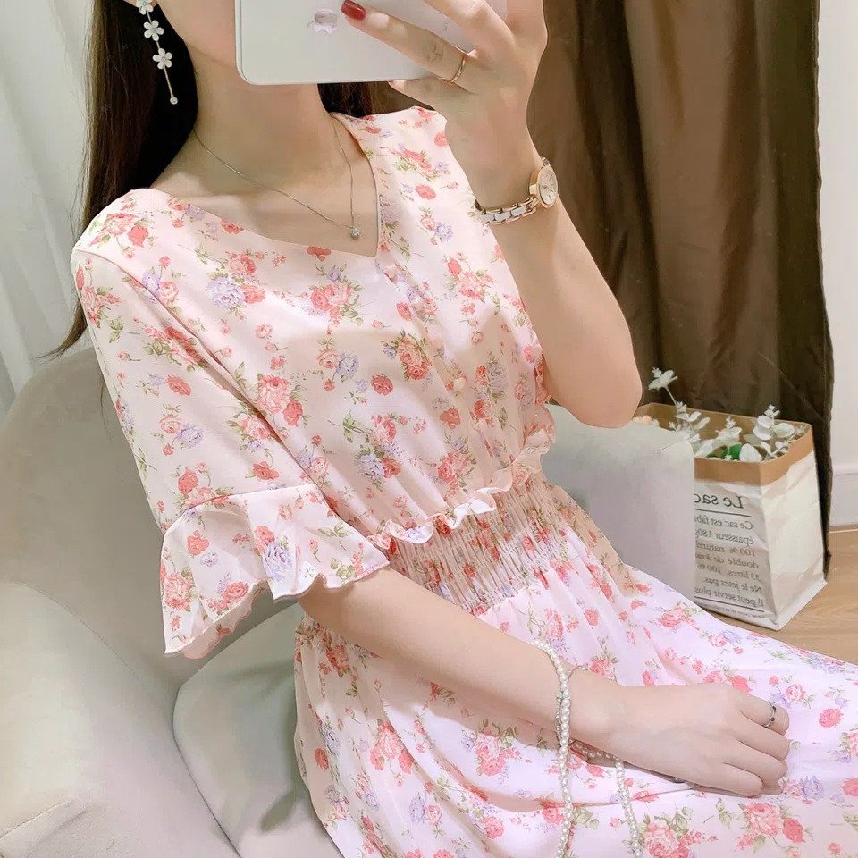 Korean Style Floral Chiffon Dress