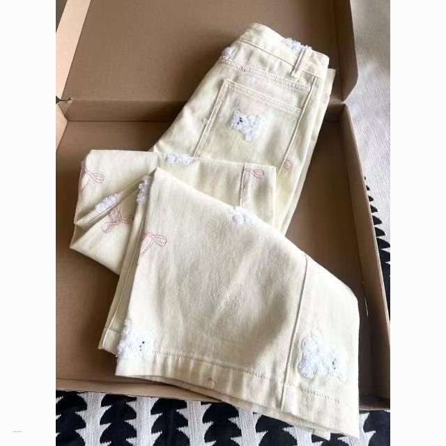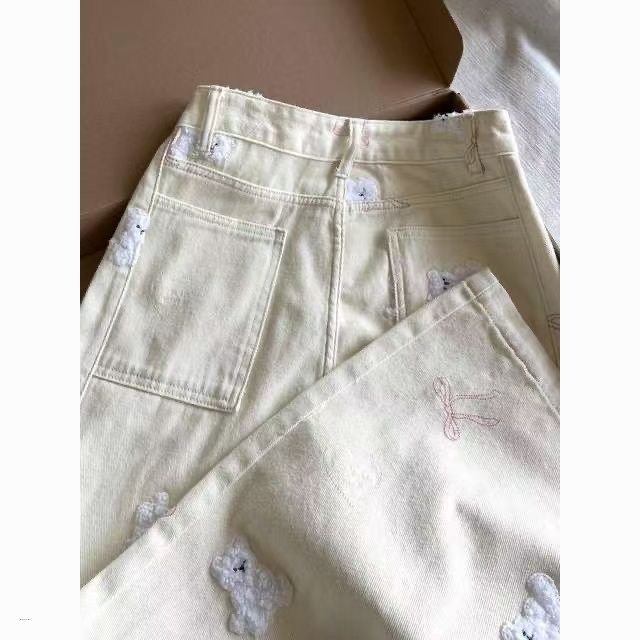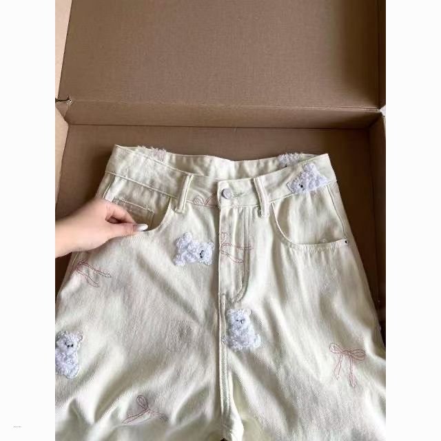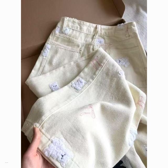 Studio Sweet Embroidered Bear Pattern Loose Casual Jeans