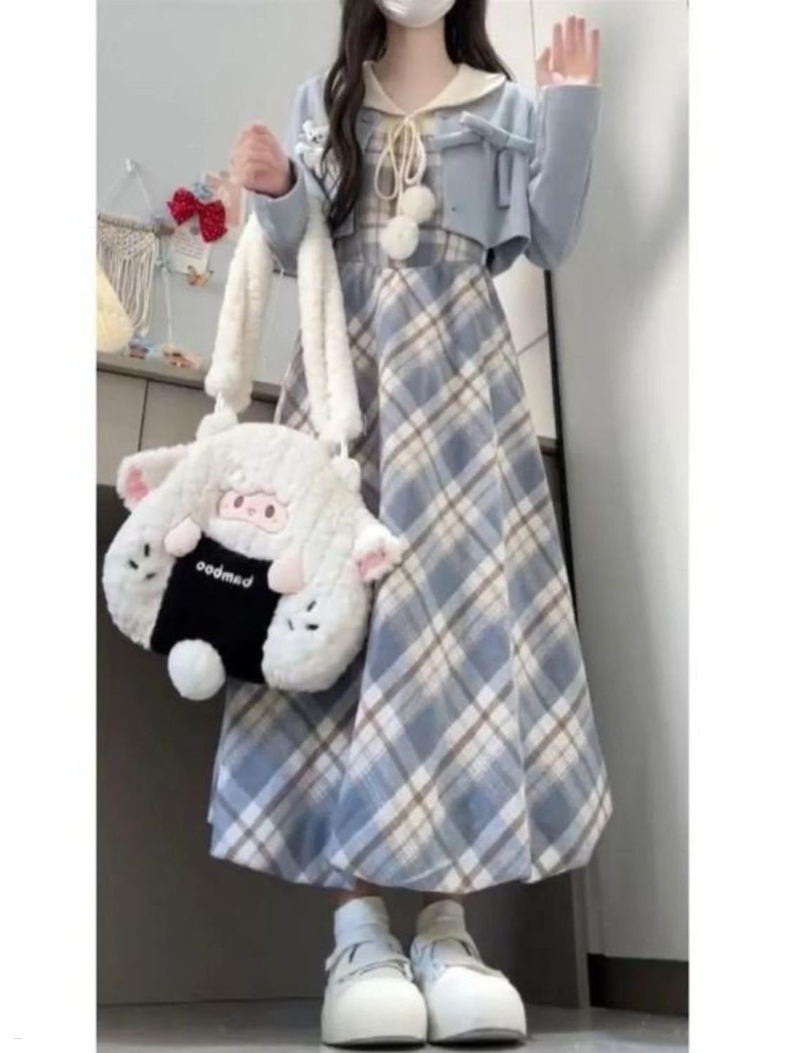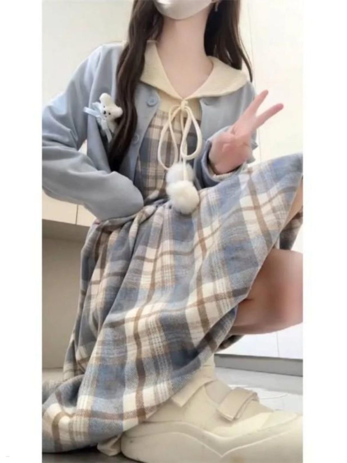 Sweet Lolita Women Kawaii Plaid Dress Suit Korean Elegant dress