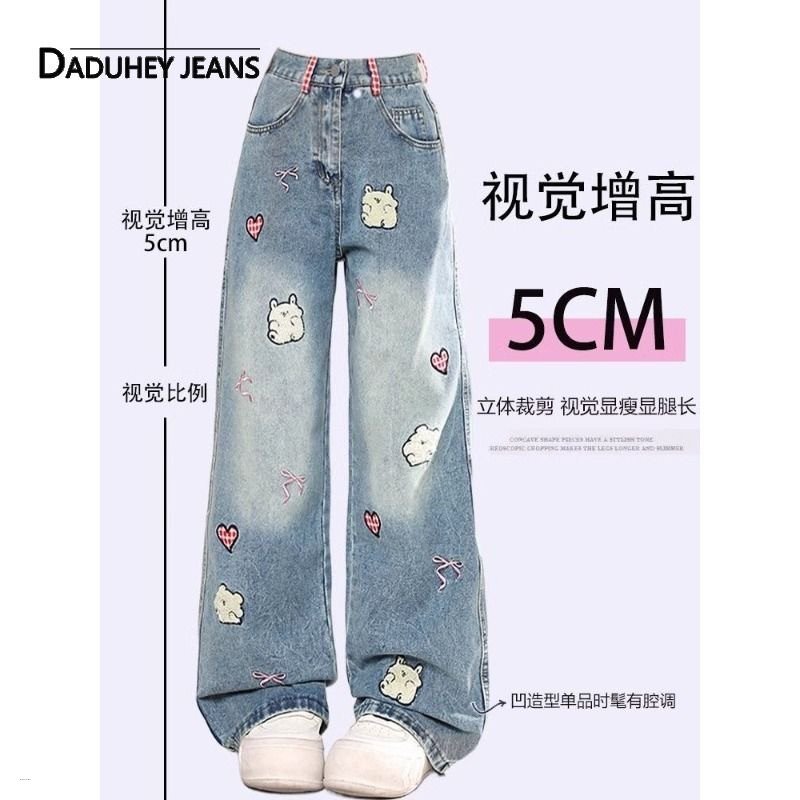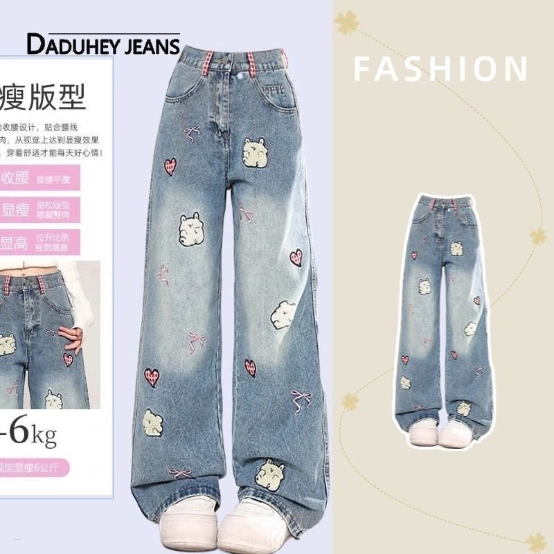 Western Cute Casual Embroidered Wide-Leg Loose Trendy Jeans Pants