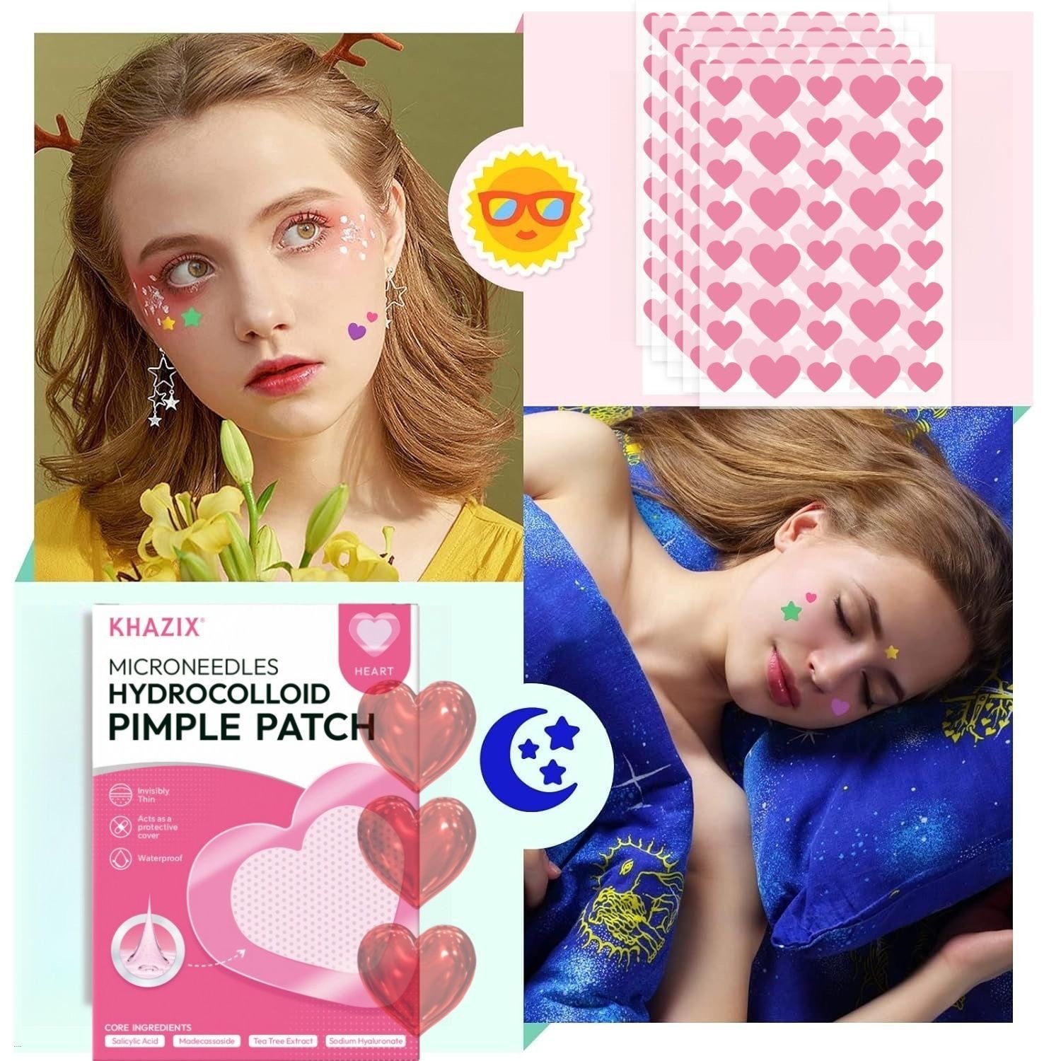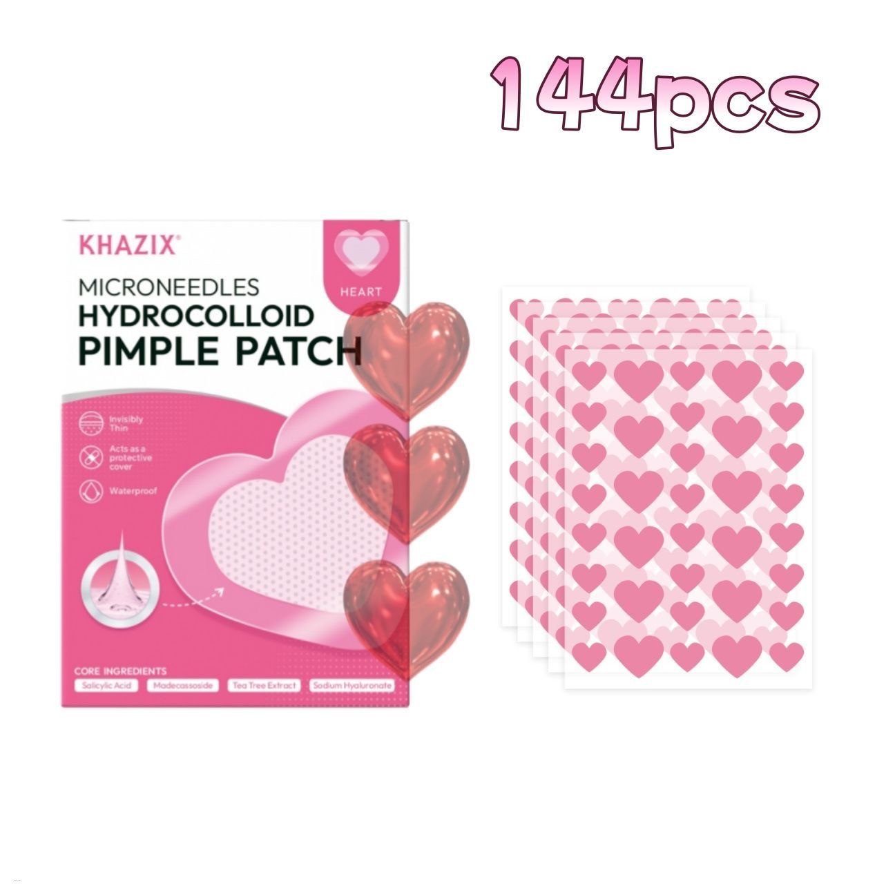 144Pcs/Pack Pink Heart Acne Patches