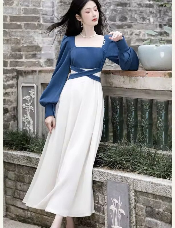 2025 Korean Winter Fashion Bowknot Long Dress
