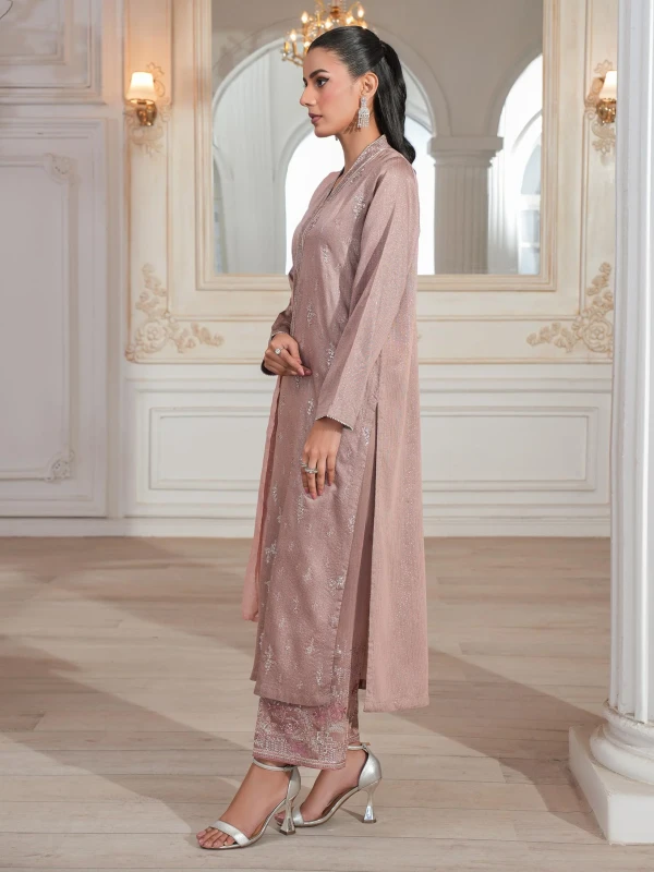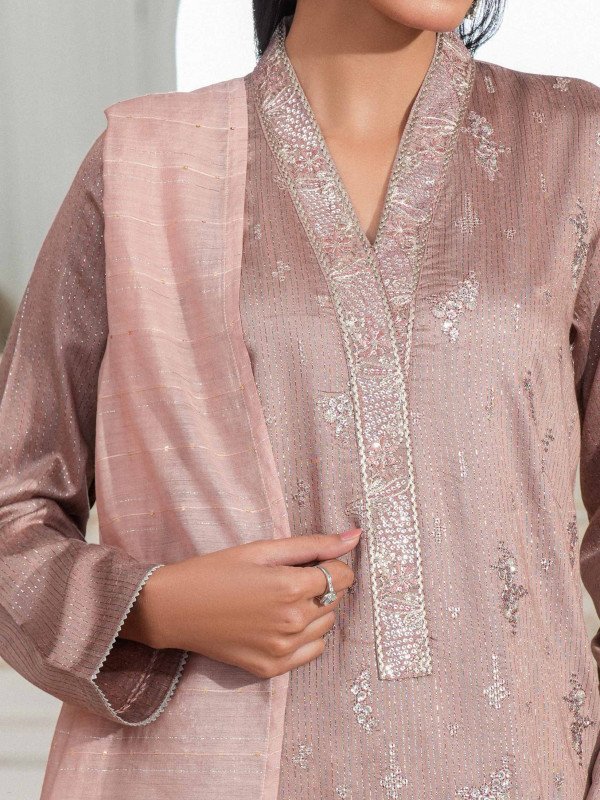 3 Piece Raw Silk Suit-Embroidered (Unstitched) By Limelight