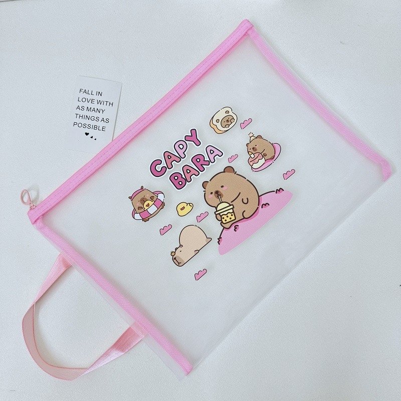 CAPY BARA Cute Cartoon A4 Mesh Zipper Bag