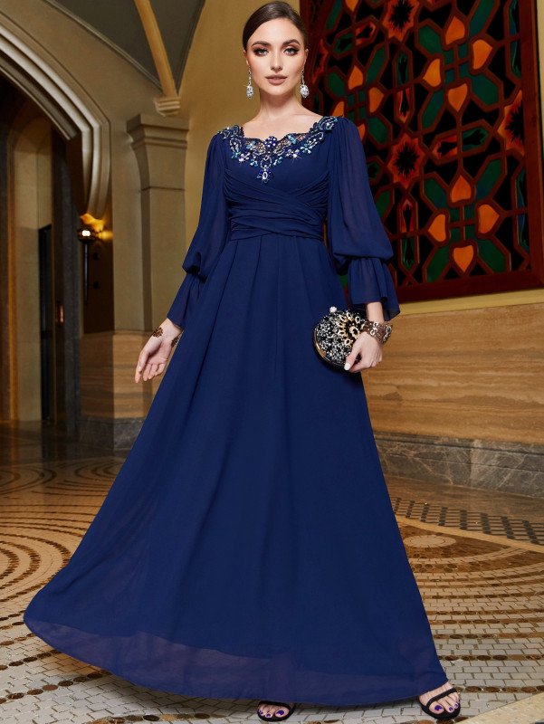 Chiffon Blue Abaya Dubai Luxury Prayer Clothes Women Dresses Kebaya