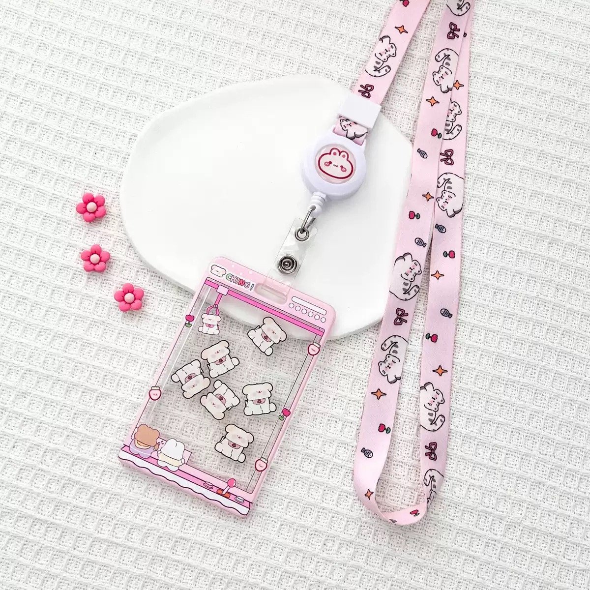 Cute Cartoon Acrylic ID Card Holder With Rope