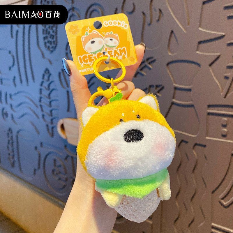 Cute Fluffy Ice Cream Plush Toy Keychain