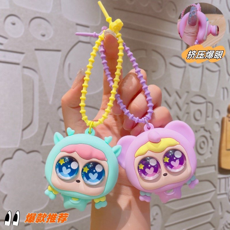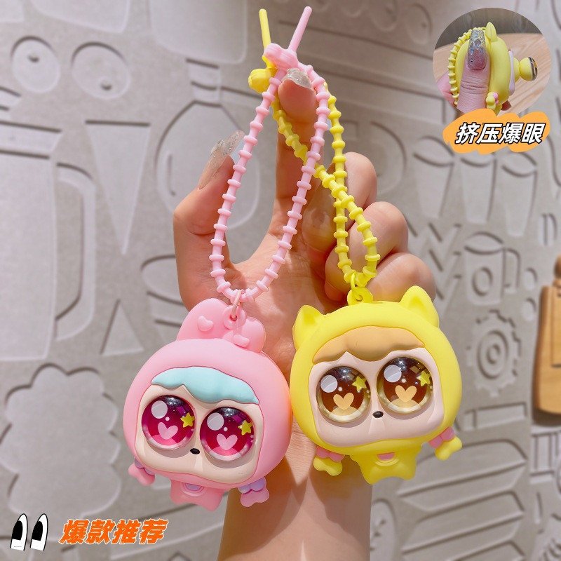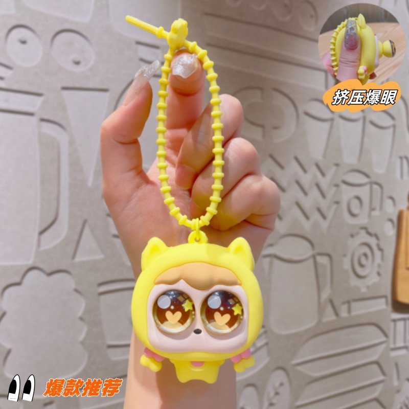 Cute Squeeze Eyes Pop-Up Girl Pinch Keychain
