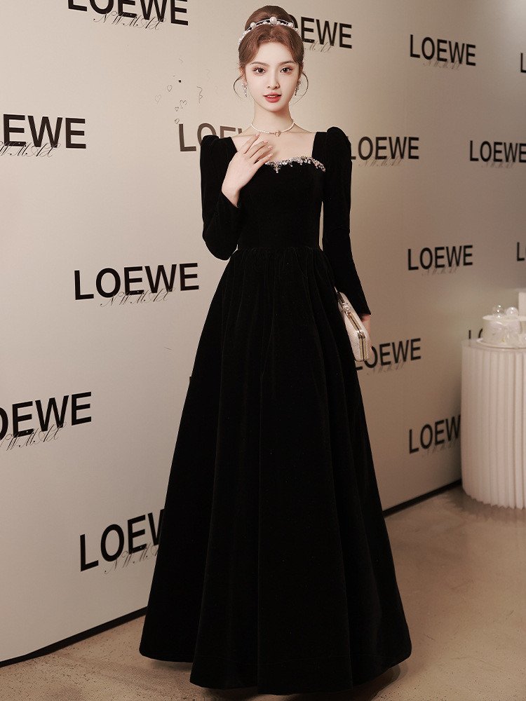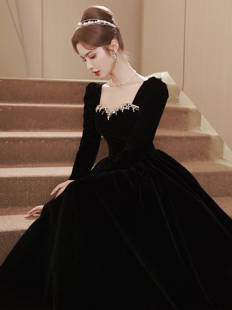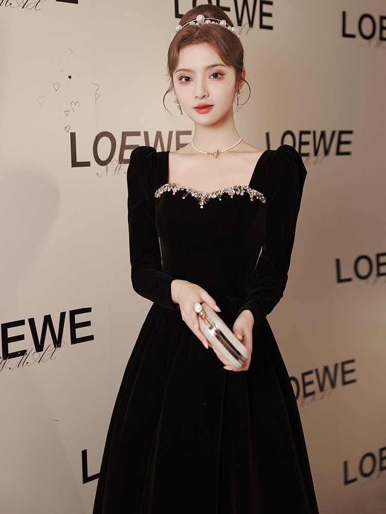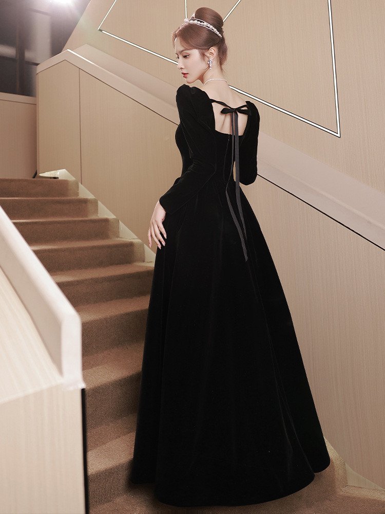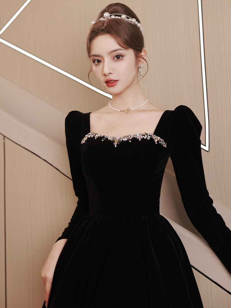 Elegant Black Velvet Party Dress