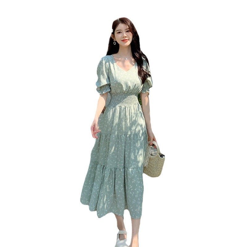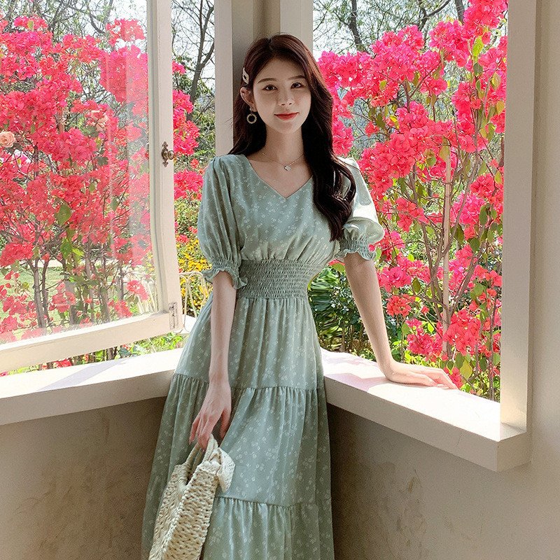 Elegant Floral Lantern Sleeve A-Line Party Dress