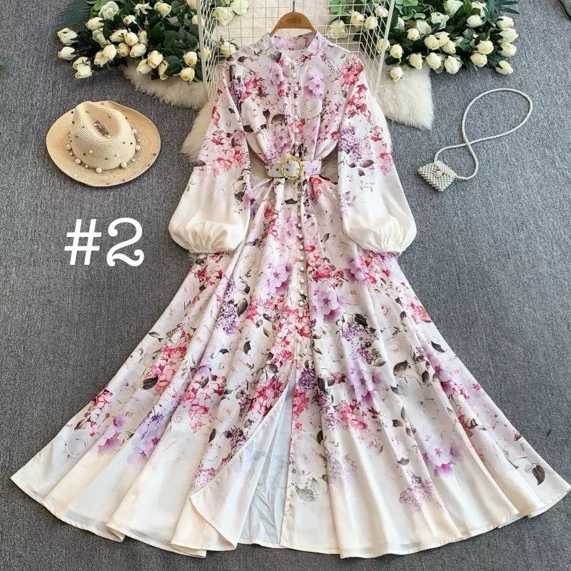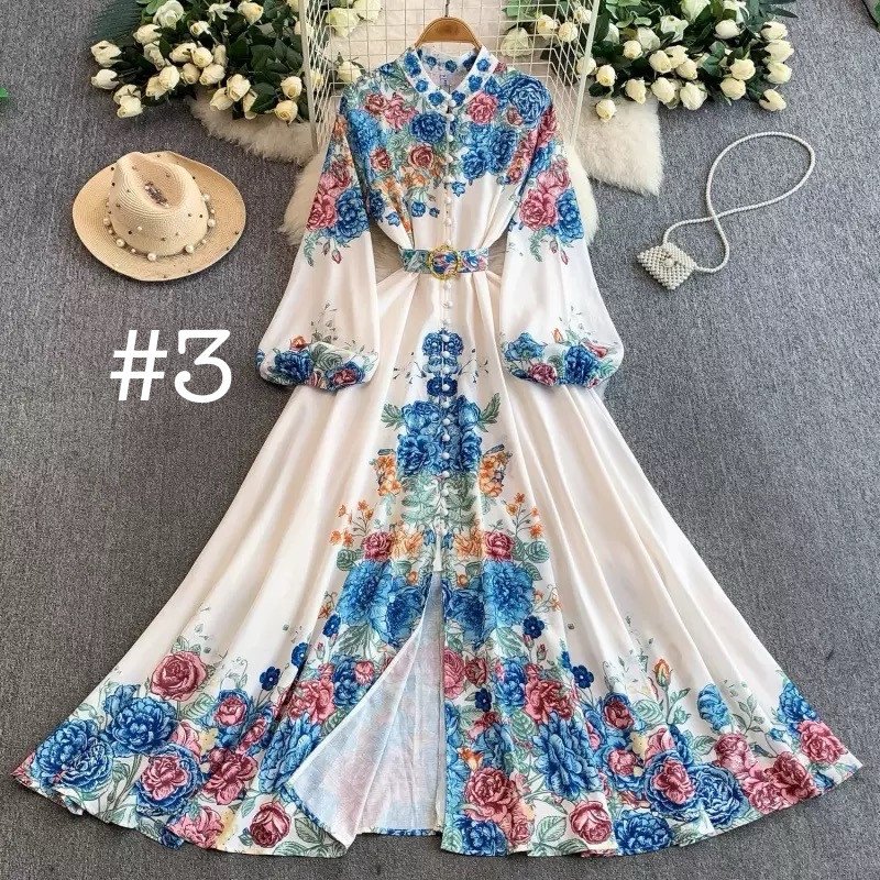 Fashion Niche Retro Court Style Floral Printed Long Dress