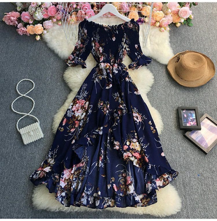 Floral Print Elegant Off Shoulder Party Dress