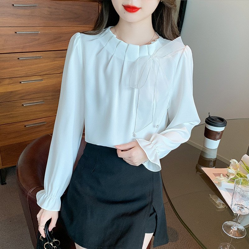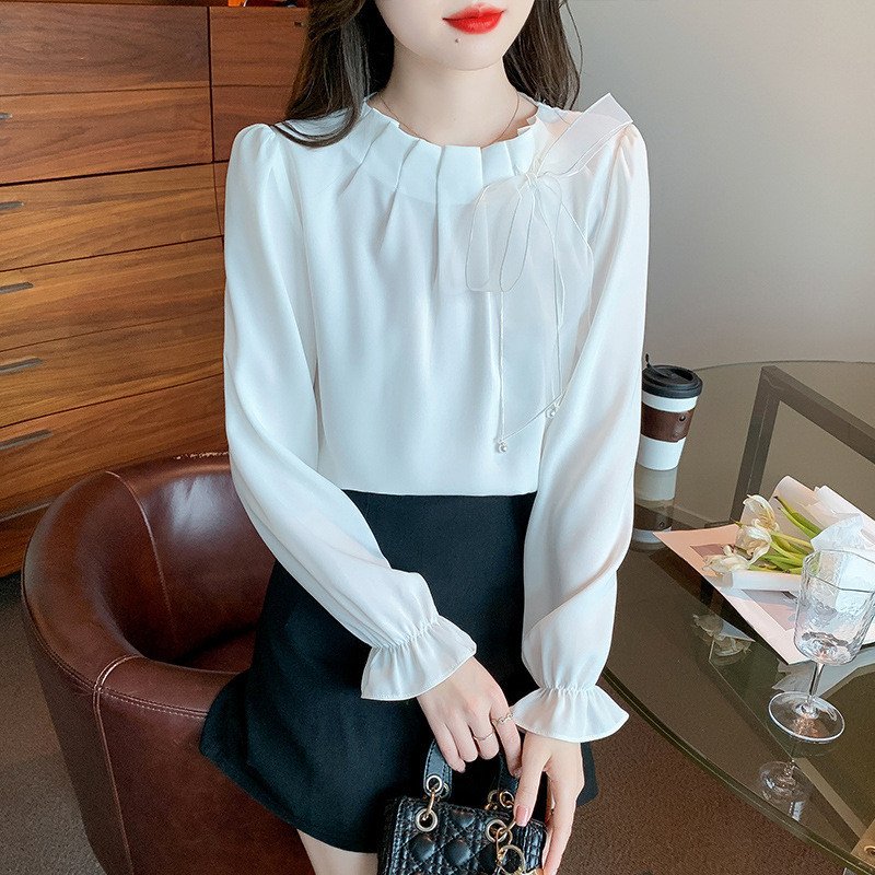 F.M.Y Y2K Bow O-Neck Flare Sleeve Casual Tops