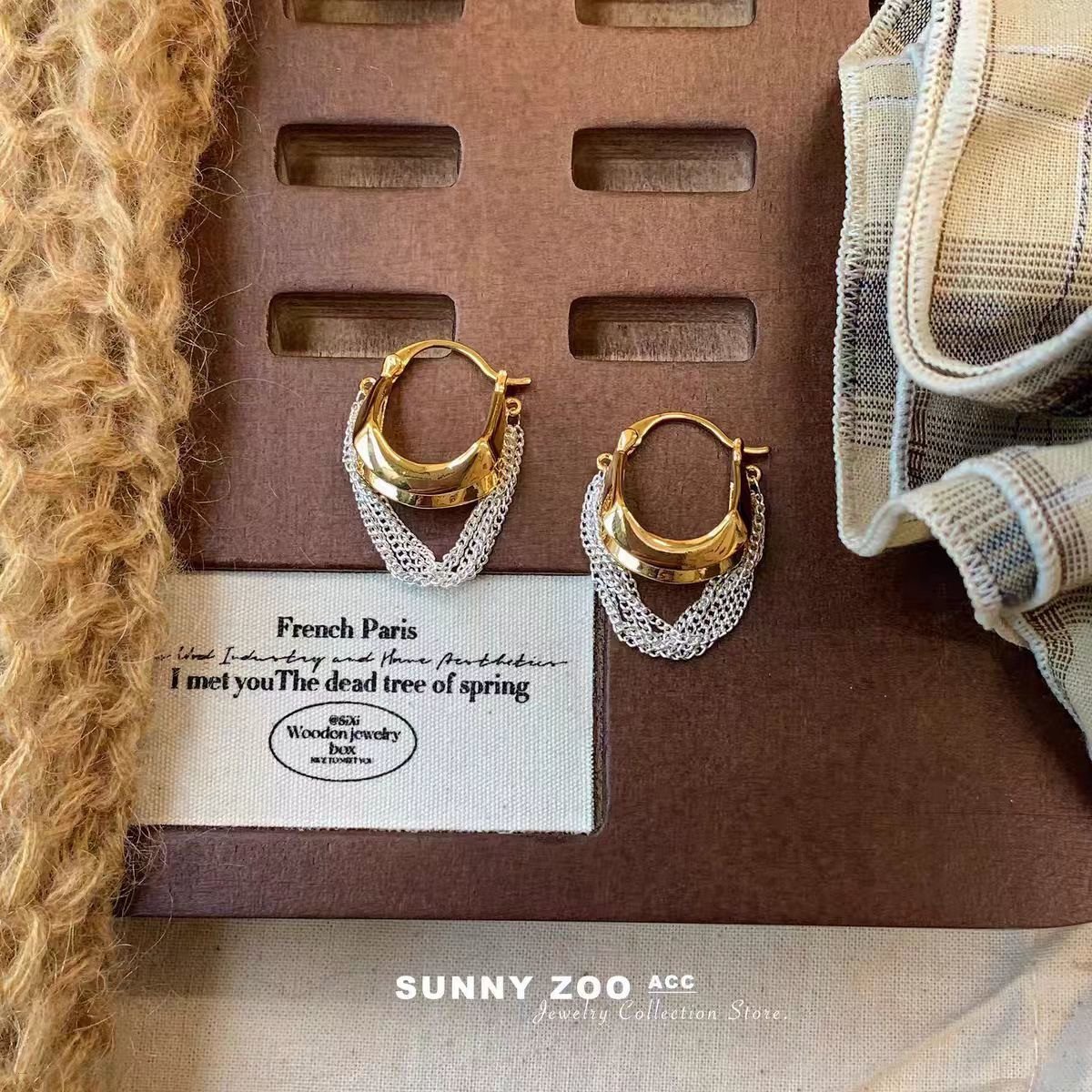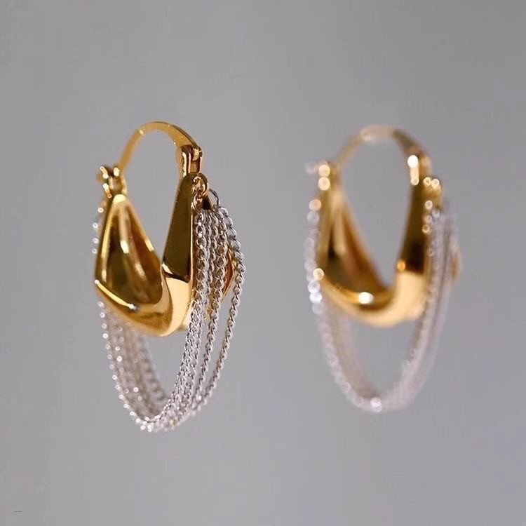 Gold and Silver Contrast Fashion Chain Tassel Earrings
