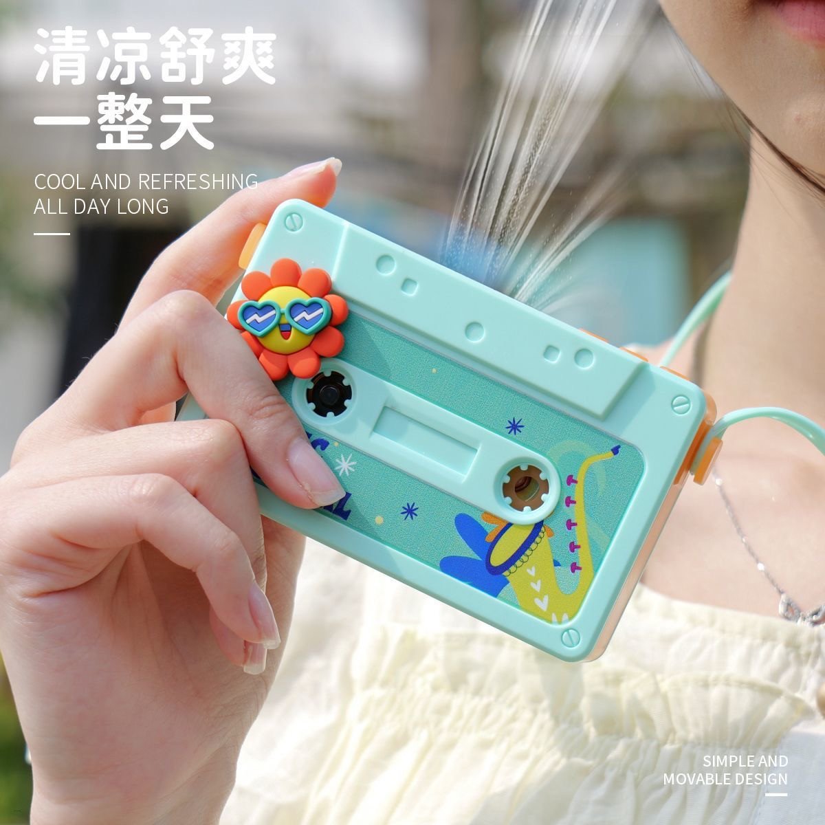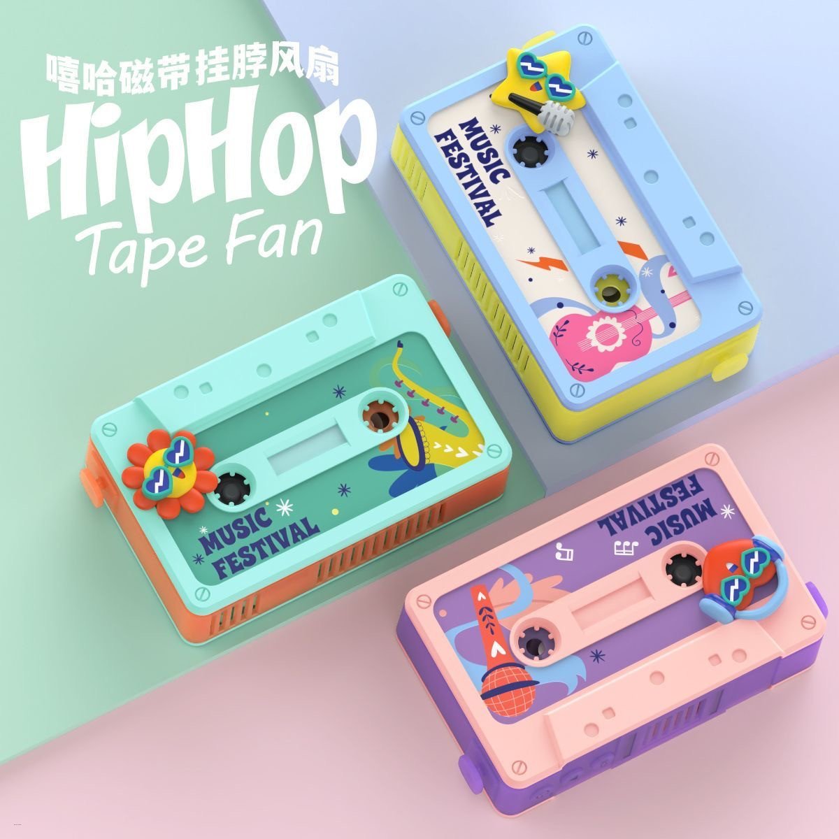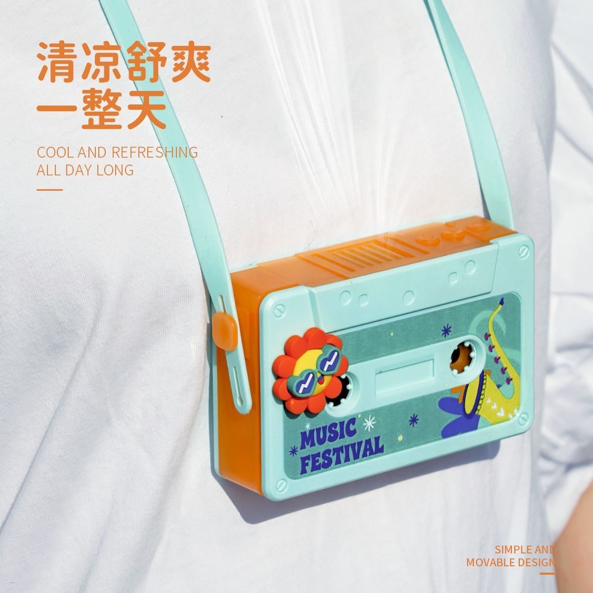 Hip-Hop Bladeless Neck-Hanging Mini Fan With Voice Recorder