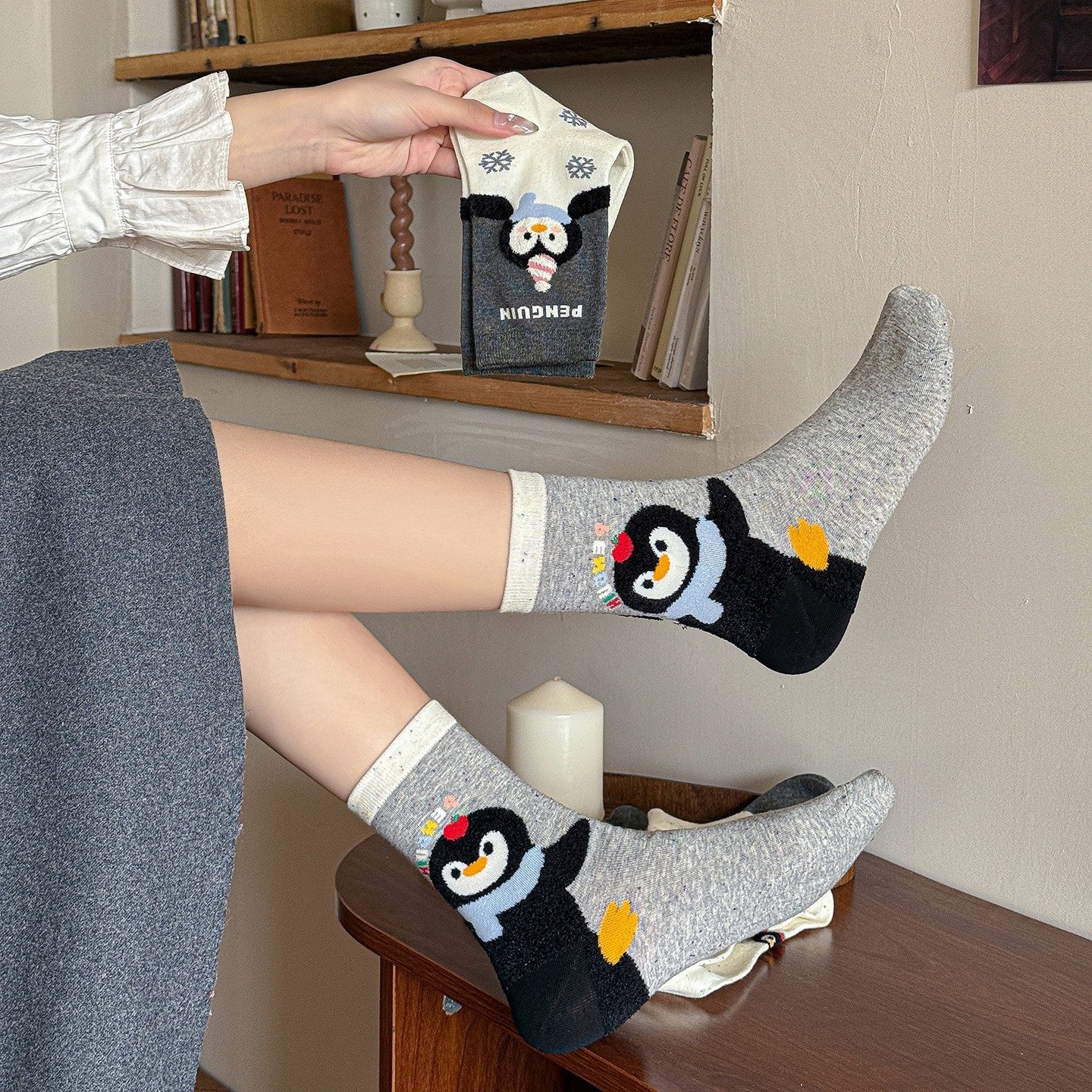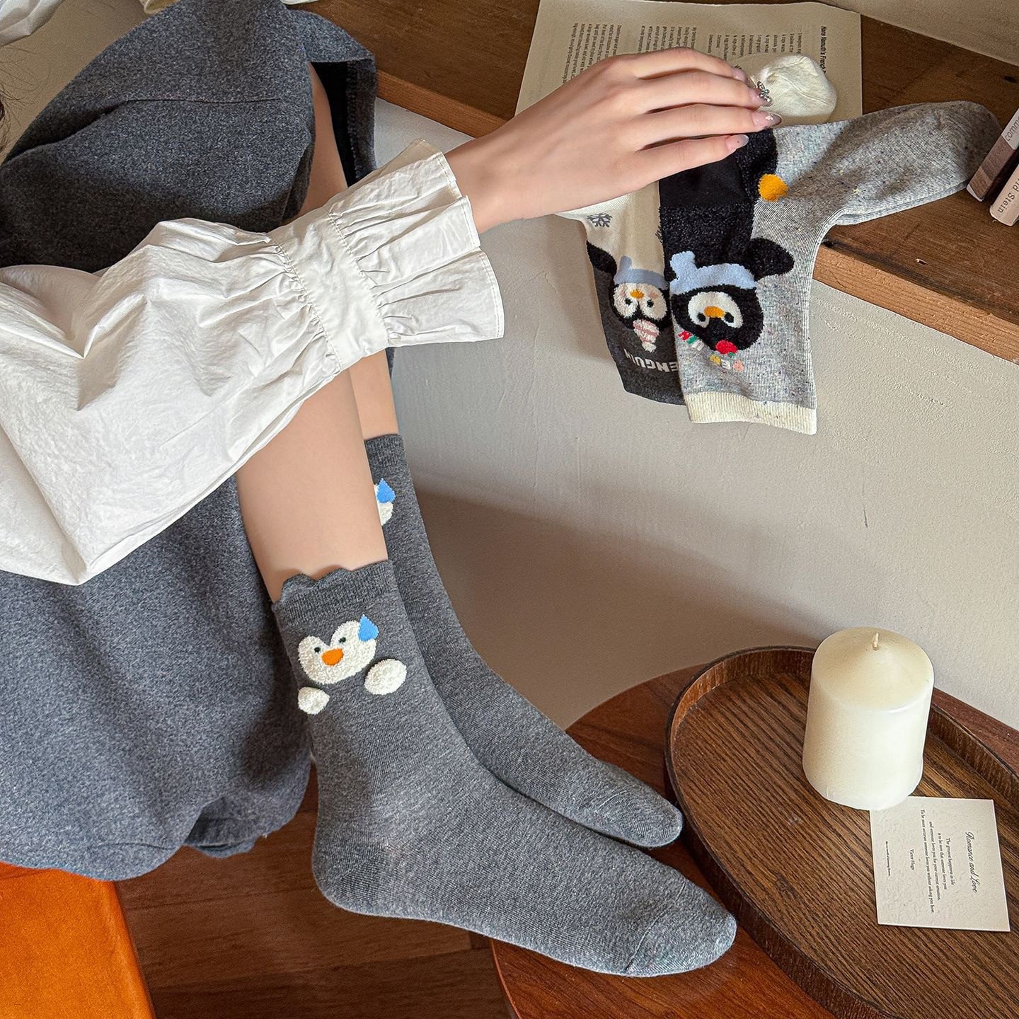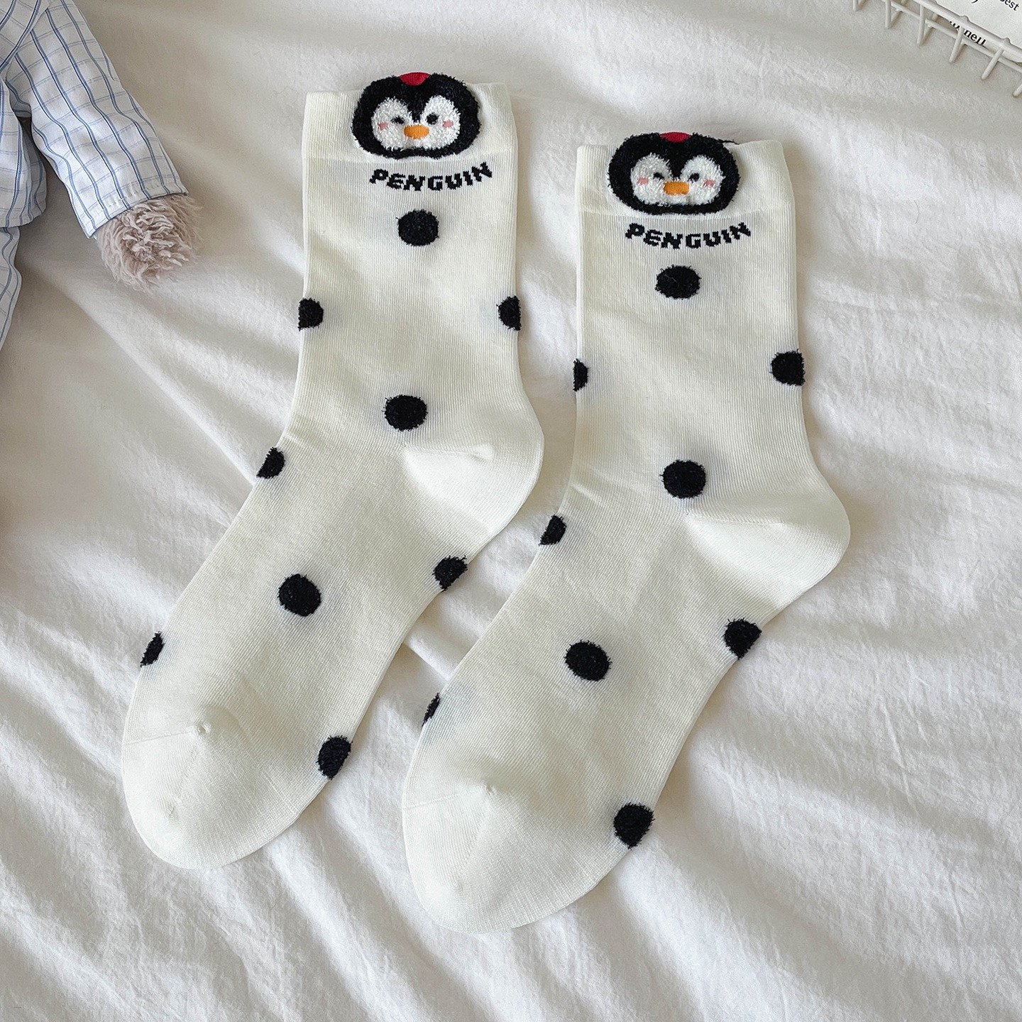 Kawaii Cute Penguin Mid-Calf Cotton Socks 1 Pair (Random Selection)