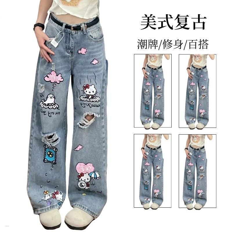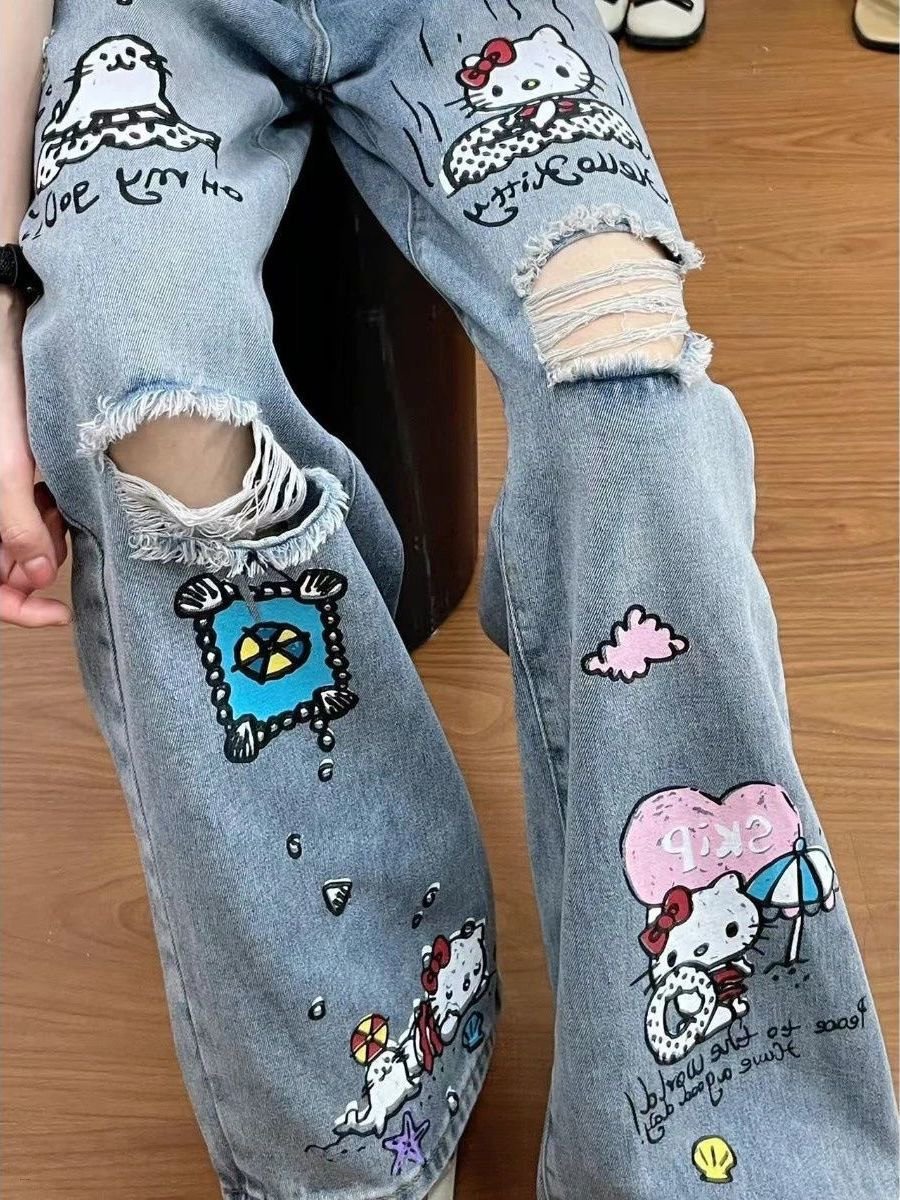 Kawaii Hello Kitty Loose Fit Casual Wide Jeans