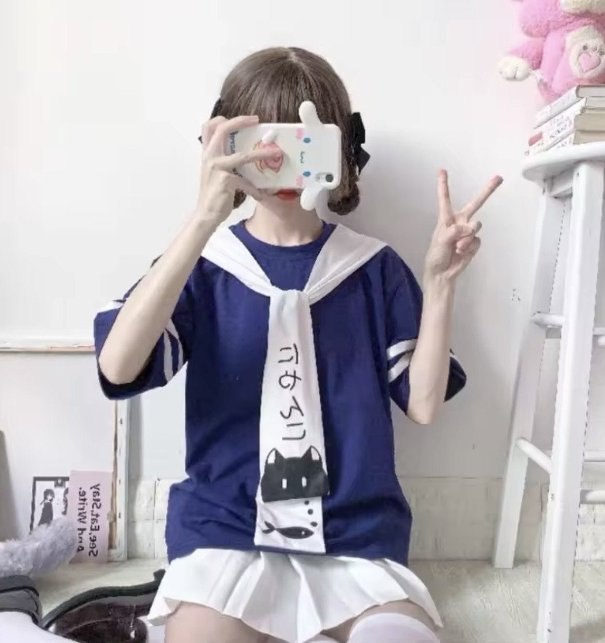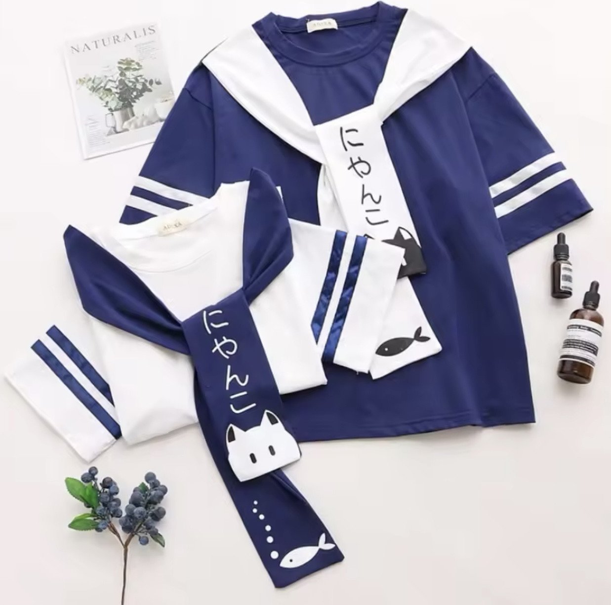 Kawaii Style Cat Fish Shot Sleeve Summer Tops