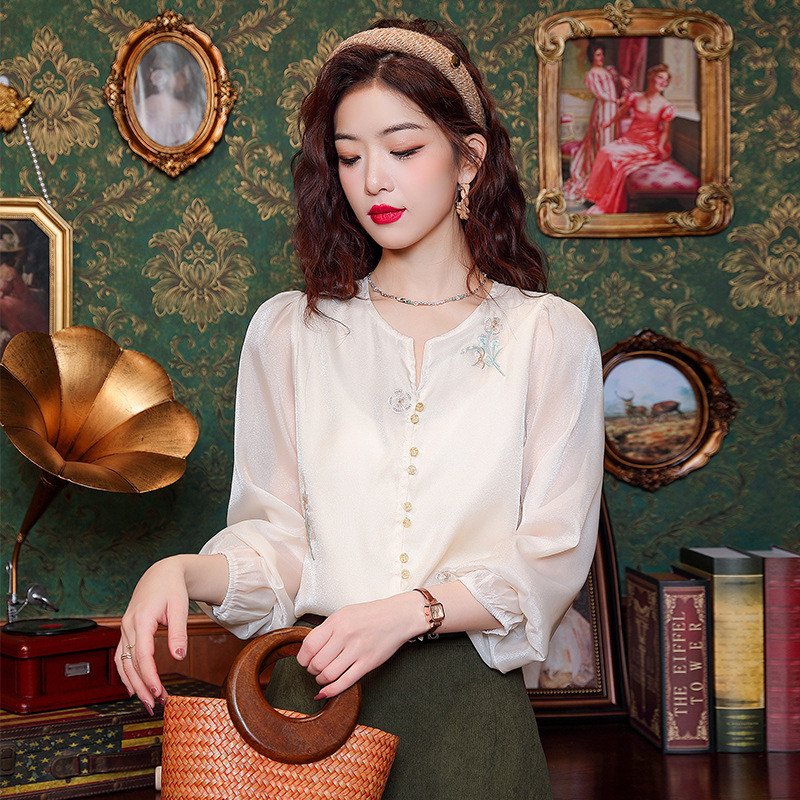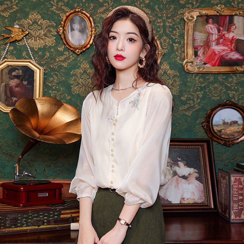Korean Fashion Embroidery Summer Casual Chiffon Tops