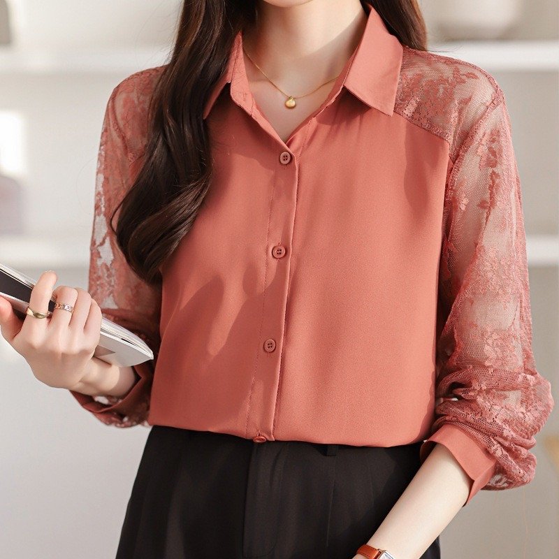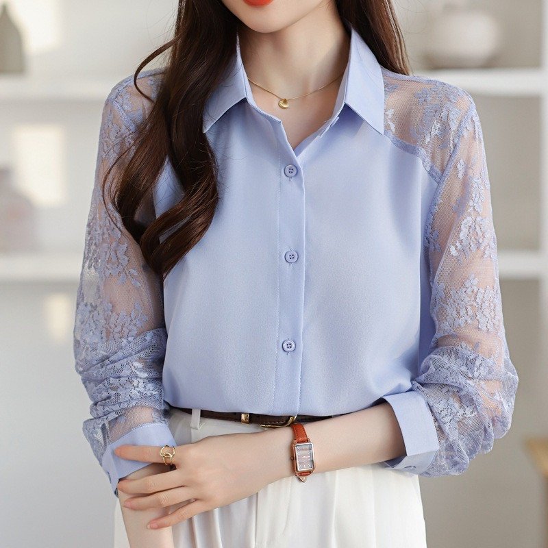 Korean Fashion Lace Long Sleeve Western Shirt