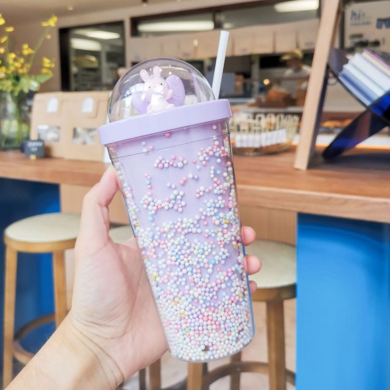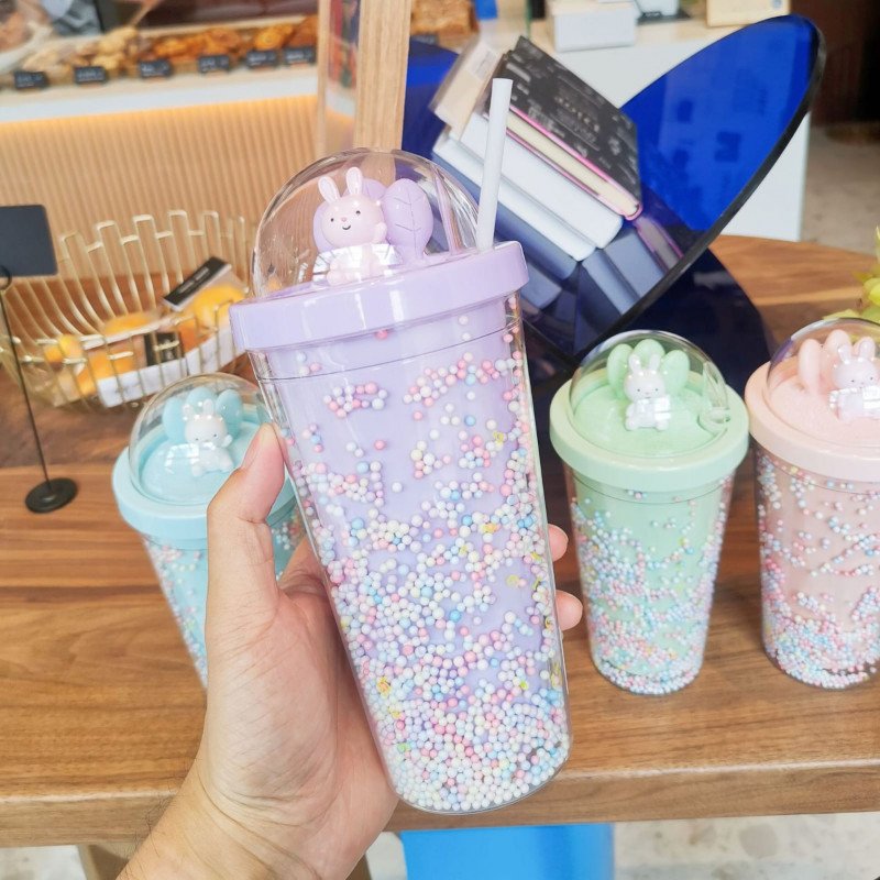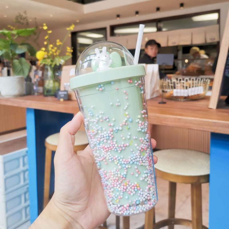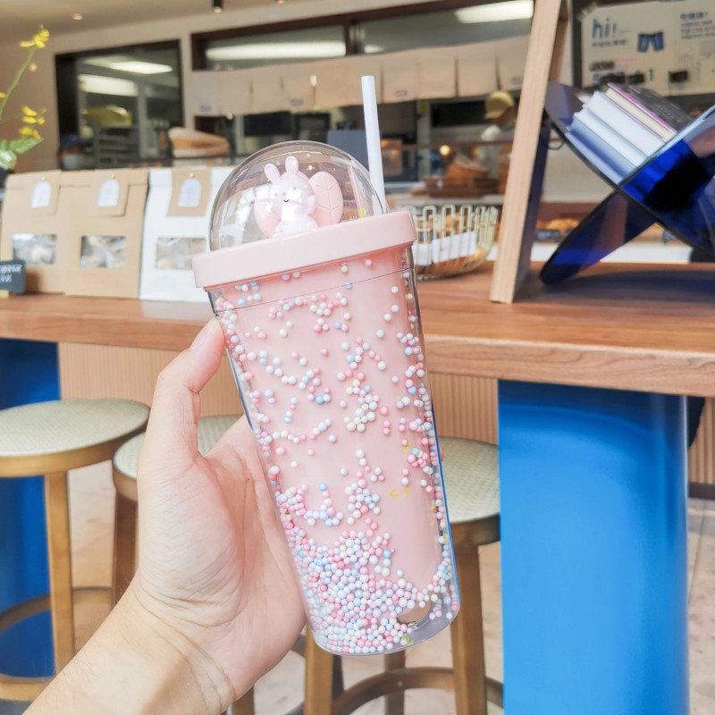 Korean Style Double Layer Creative Sweet Mug Sipper Glass Bottle [Cute Rabbit Designed]