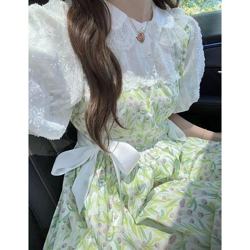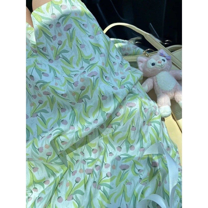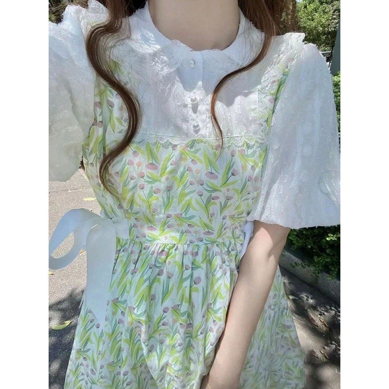 Korean Style Kawaii Green Floral Summer Dress