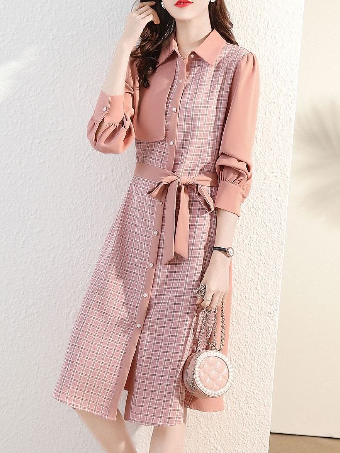 Korean Style Plaid Chic Ruffled Collar Casual Dress