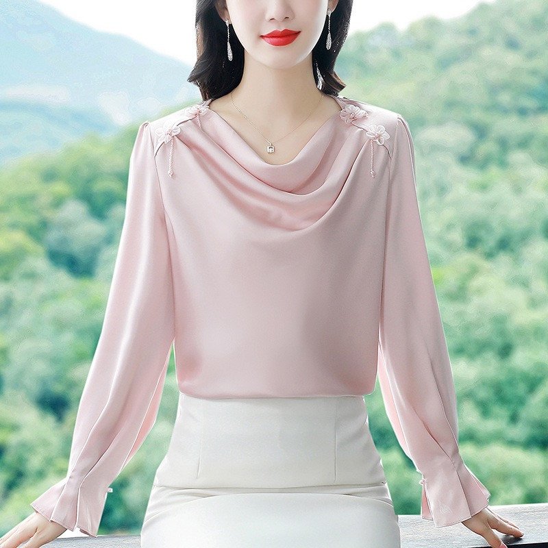 Korean Style Slim Fit Long Sleeve Flower Designed Tops