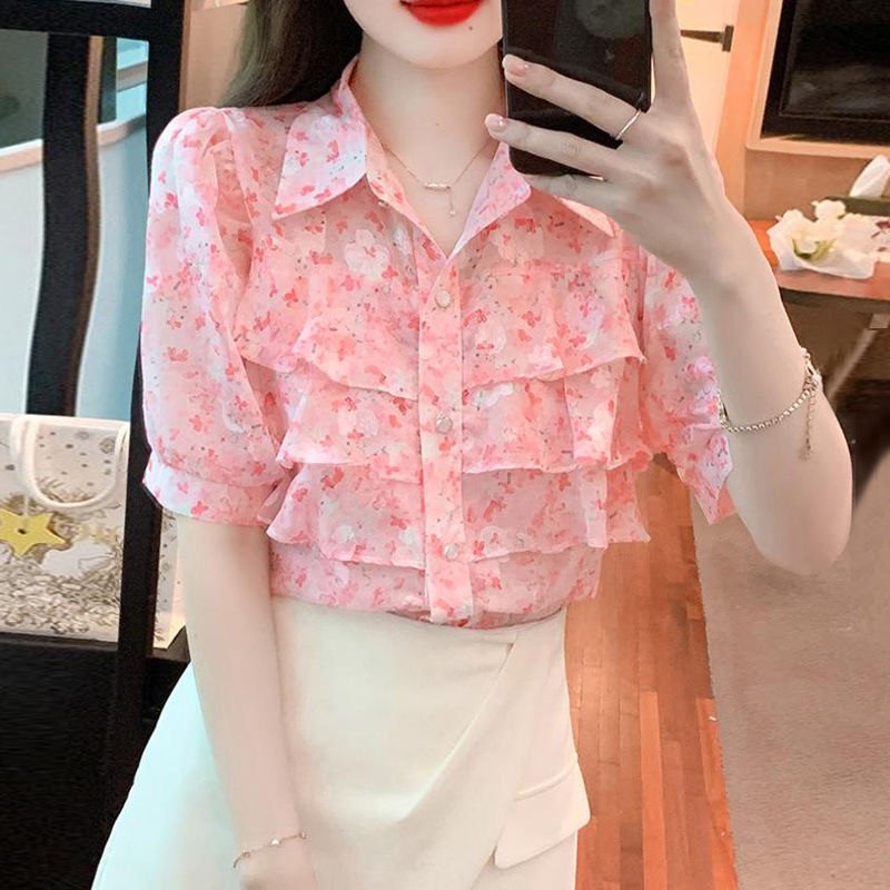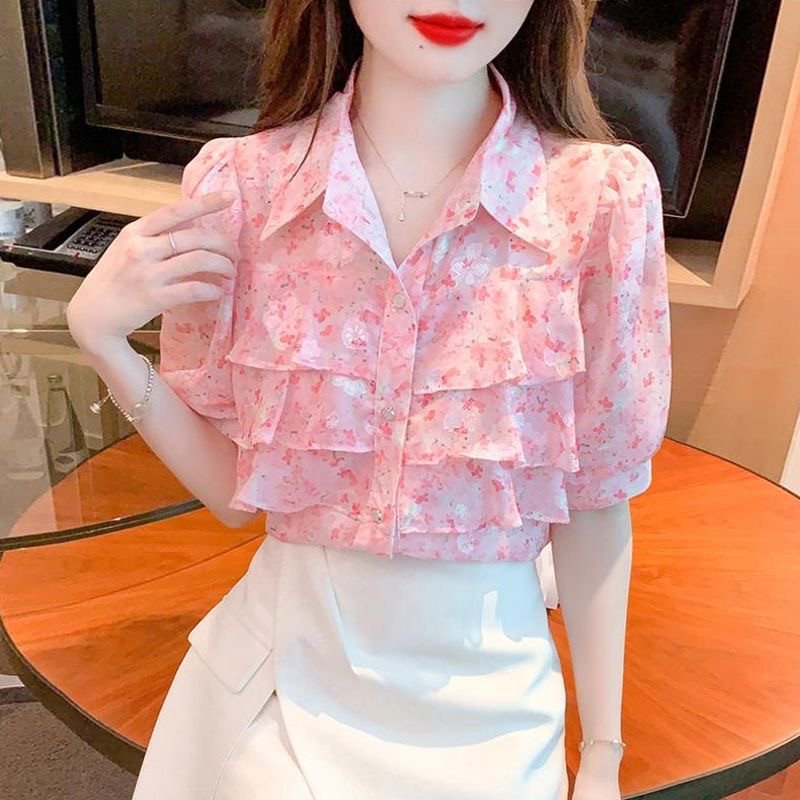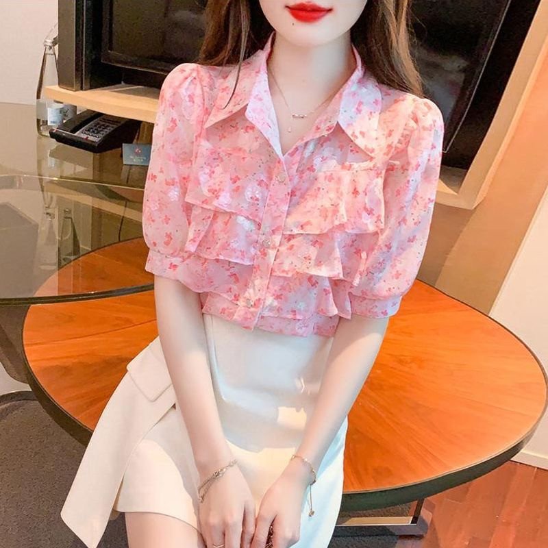 Korean Turn-Down Collar Printed Casual Summer Shirt