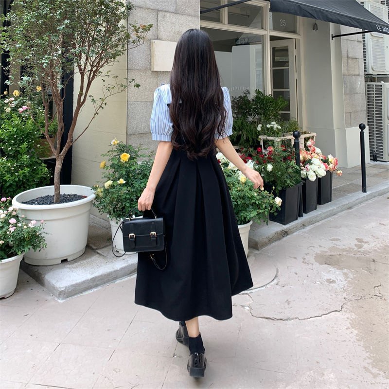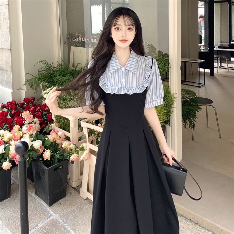 Preppy Style Fake two Pieces Spliced Striped Summer Dress