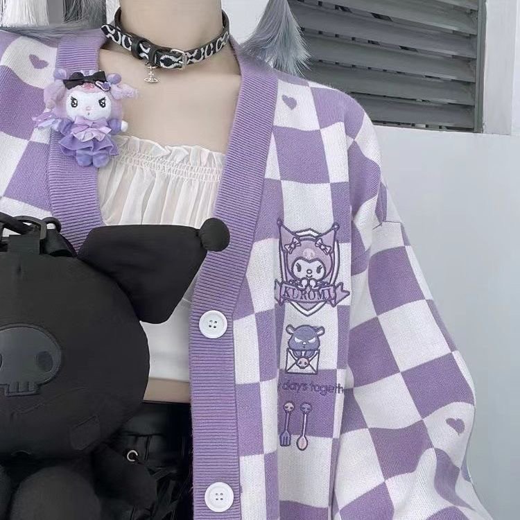• Sanrio Y2k Cinnamoroll Kawaii Cardigan Women Kuromi Melody Korean Fashion Sweater Female Preppy Style Long Knit Top Clothes 2023
