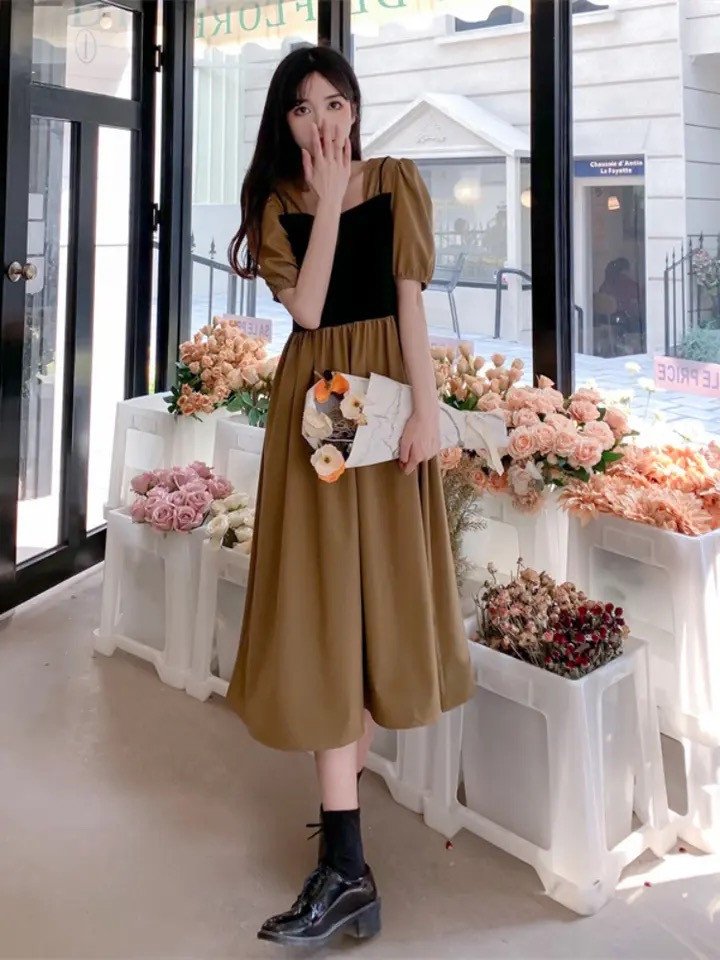 Solid Color High Waist Princess Dress