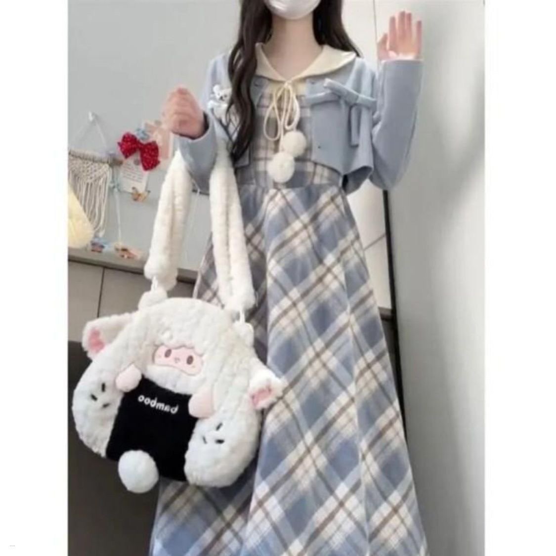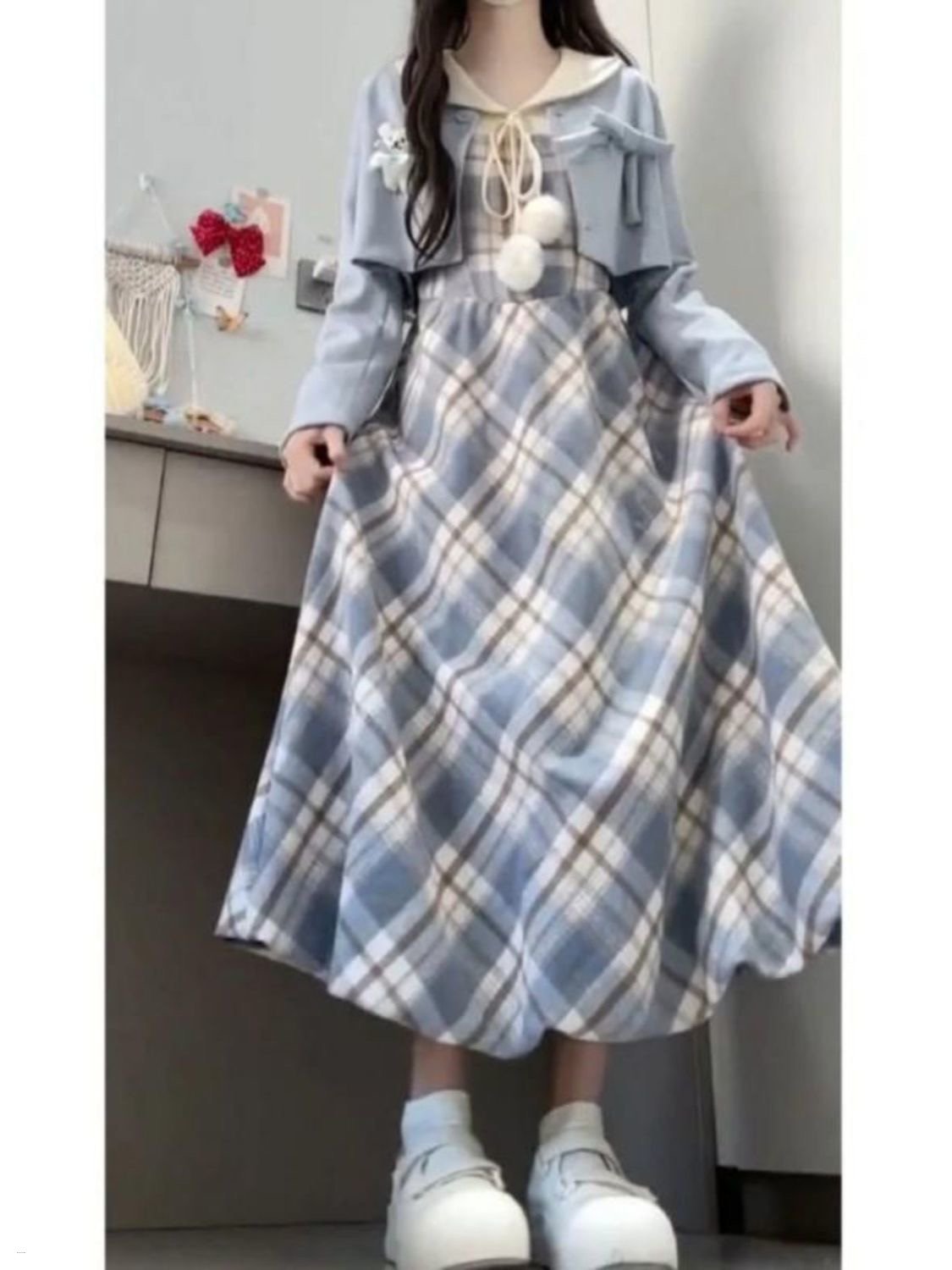Sweet Lolita Women Kawaii Plaid Dress Suit Korean Elegant dress