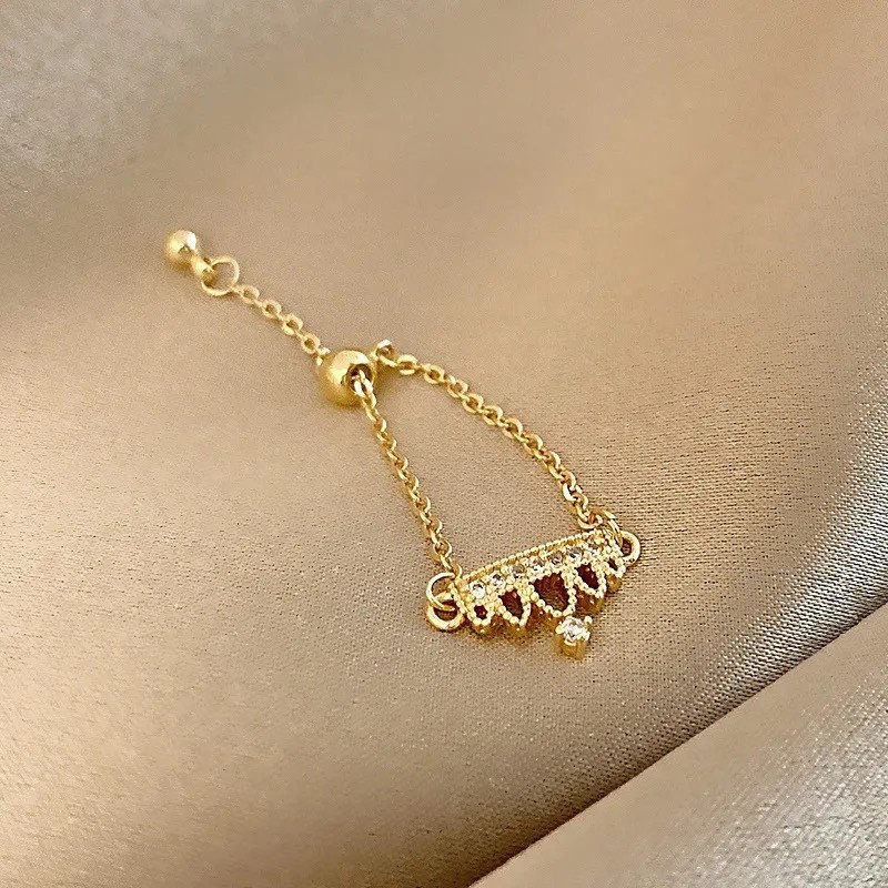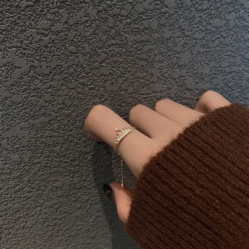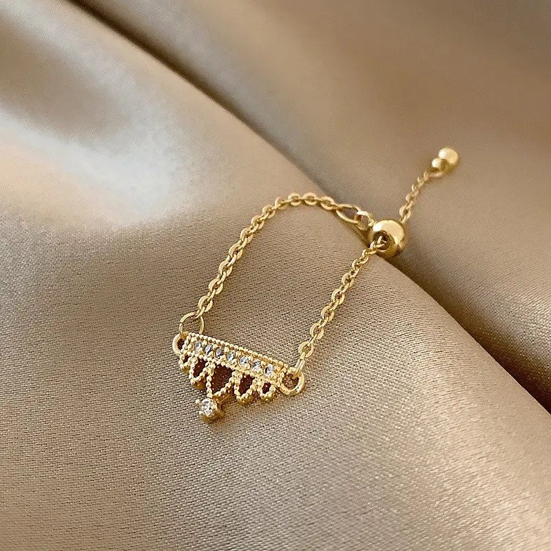 Trendy Fashion Crown Chain Long AAA Zircon Finger Ring