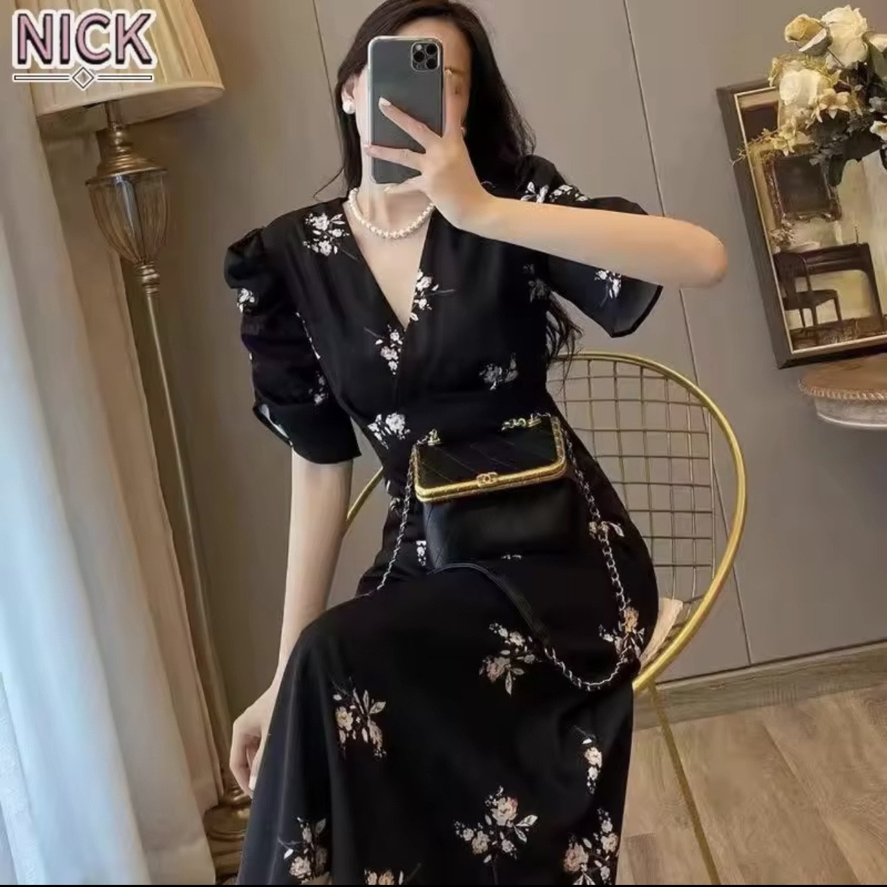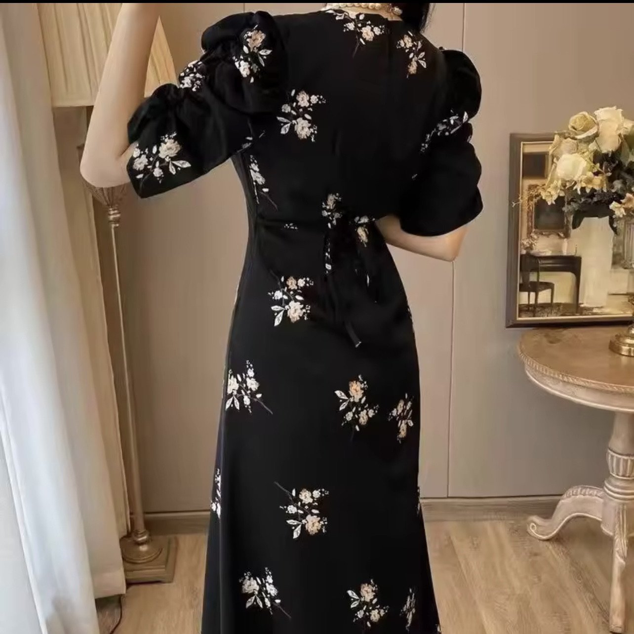 Item: Floral Sling Black Dress