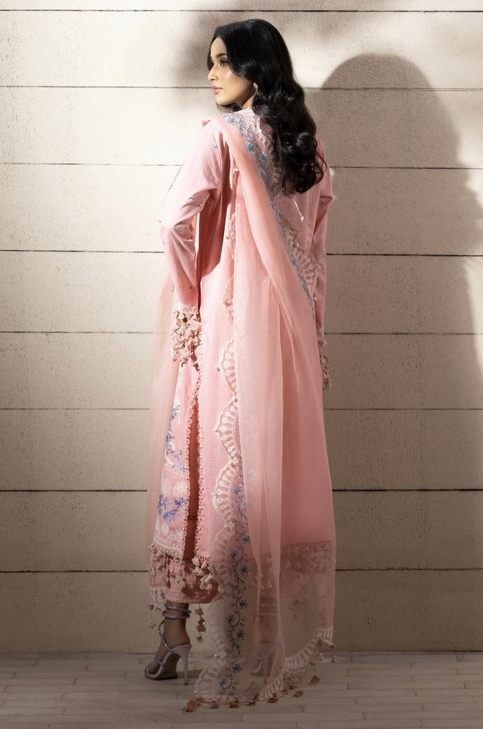 * Embroidered Sleeves On Printed Lawn (0.65m)